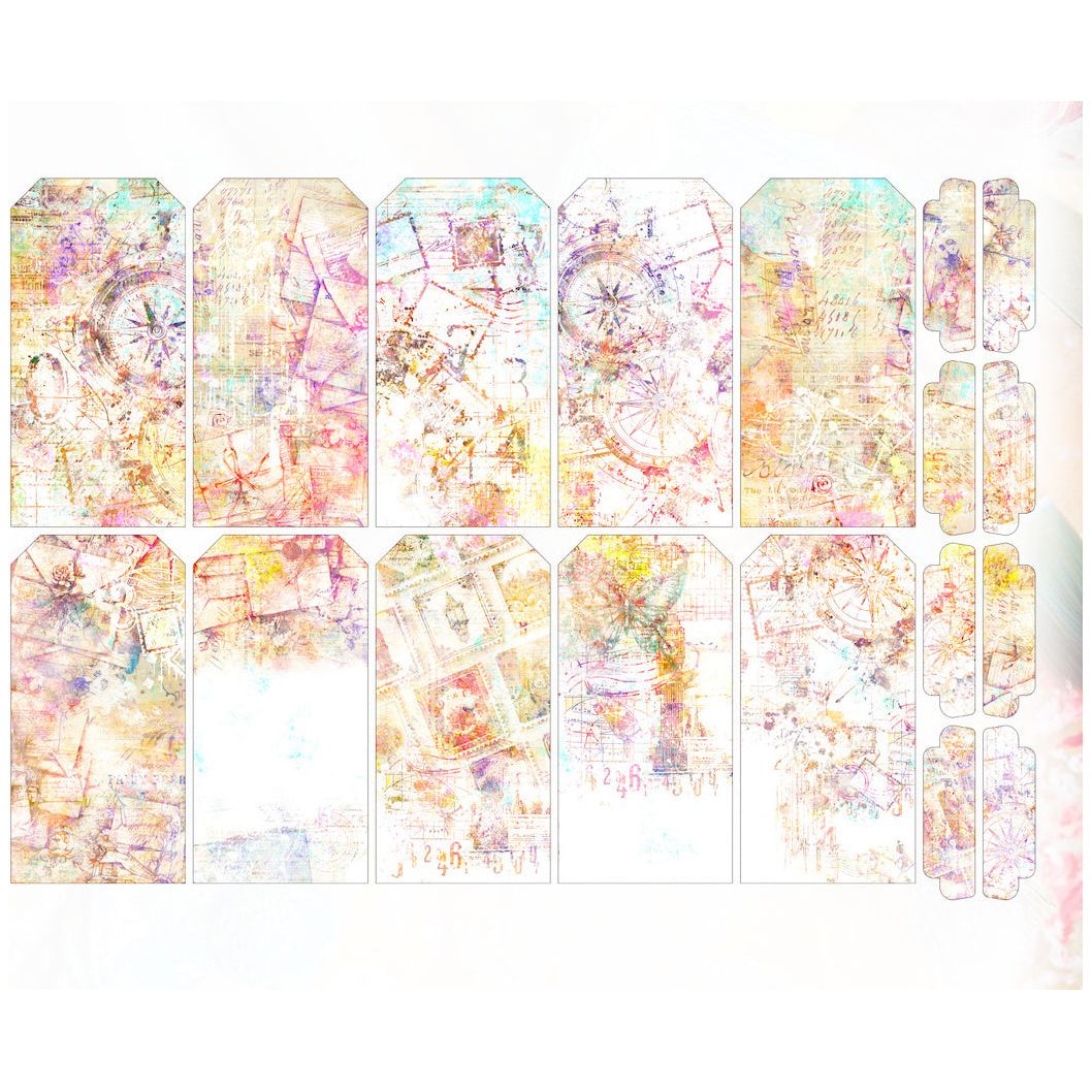 The AALL & Create Bright Blush Ephemera Die-Cuts, designed by Autour De Mwa & Co. for the Cardinal Mail Collection, come in a pack measuring approximately 4 x 6 inches and include 18 die-cut pieces crafted from high-quality 280gsm ephemera paper. The designs feature tags and file labels filled with collages of postage stamps, compasses, writing, envelopes, butterflies, and more in shades of pink, perfect for adding elegant and creative touches to your projects.