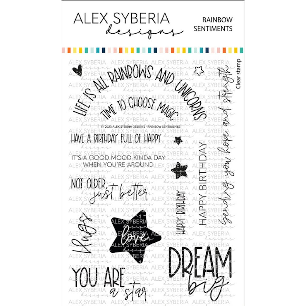 So whether you're a seasoned crafter or just starting out, the Alex Syberia Designs Rainbow Sentiments Clear Stamp Set is a must-have for all your paper crafting projects. Order your set today and start creating beautiful, one-of-a-kind designs that are sure to spread positivity and cheer!