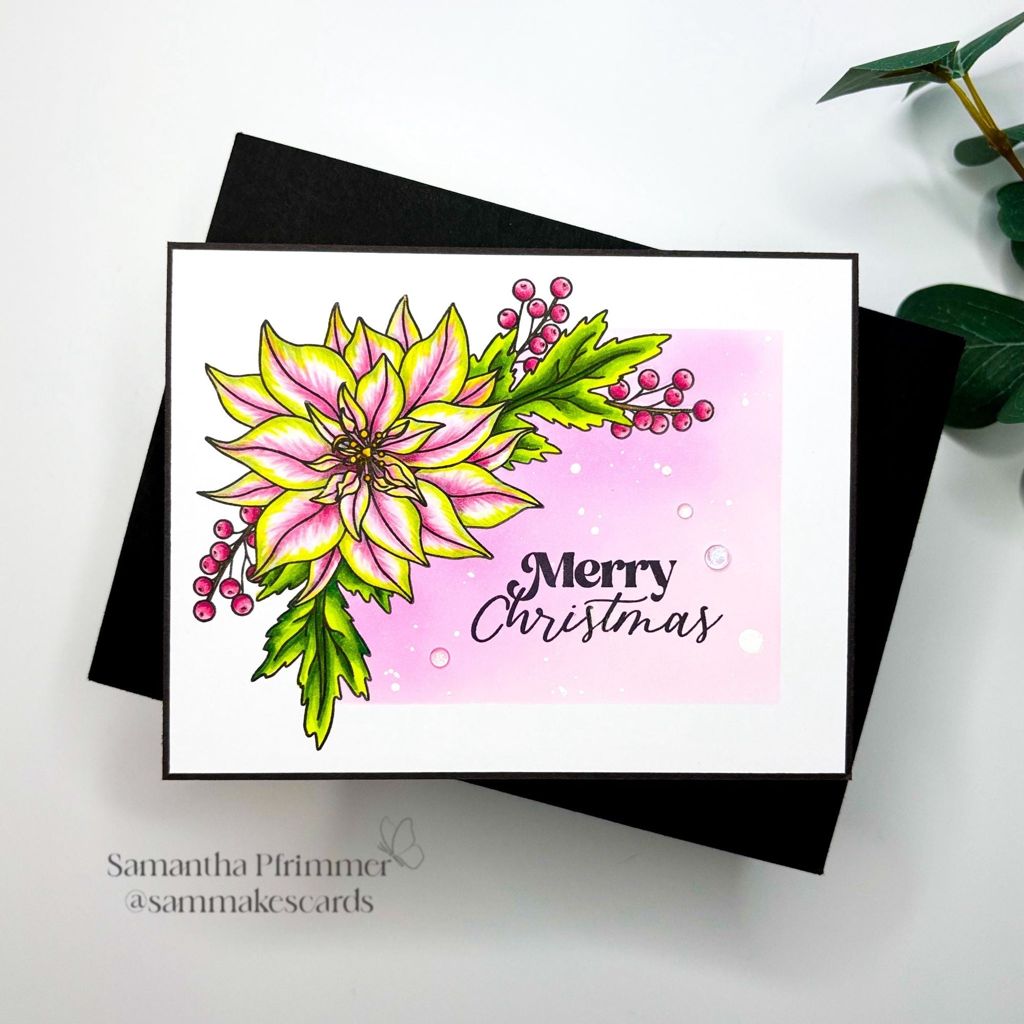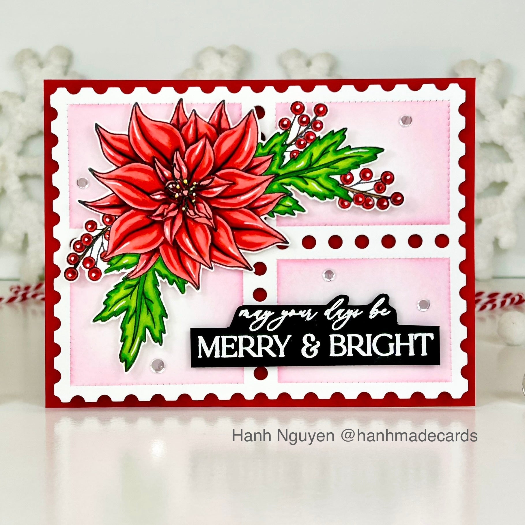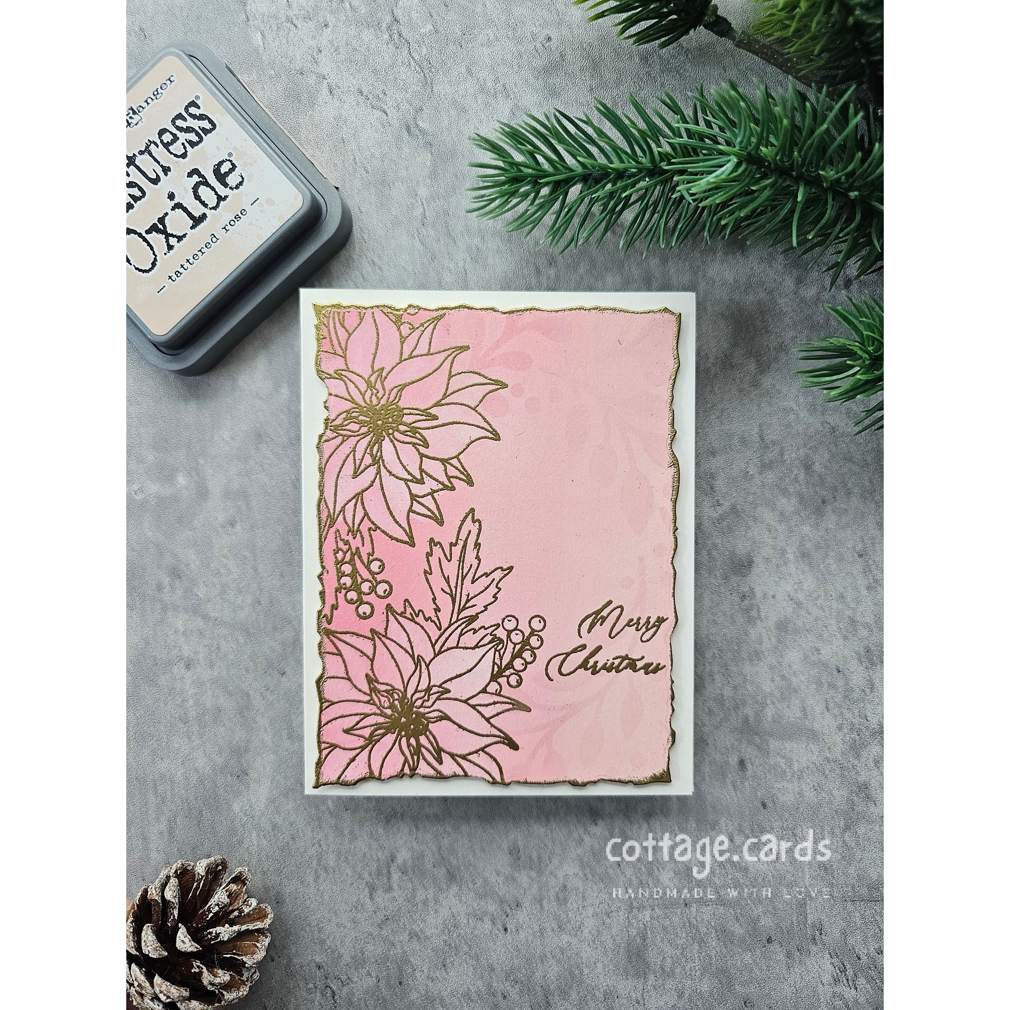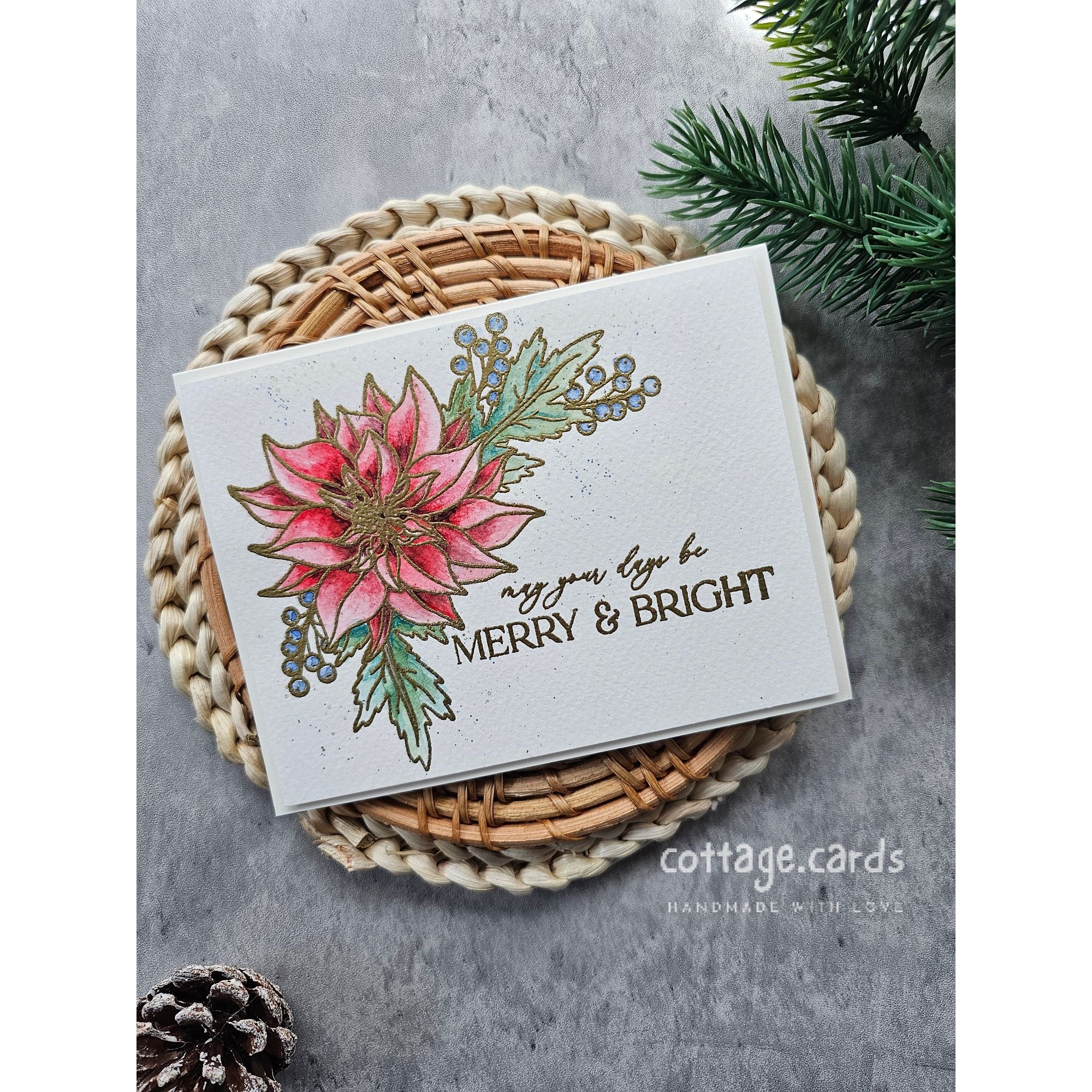 The dies cut out the poinsettia and greenery image as well as all of the sentiments. Whether you're an experienced crafter or just starting out, this stamp set will help you create timeless holiday designs with ease.