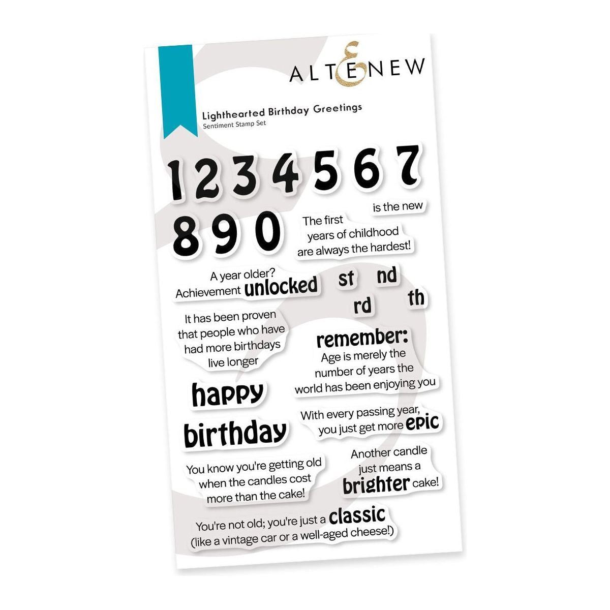 Say goodbye to the same old birthday sentiments and welcome a touch of humor, wit, and cleverness with the Altenew Lighthearted Birthday Greetings Clear Stamps!