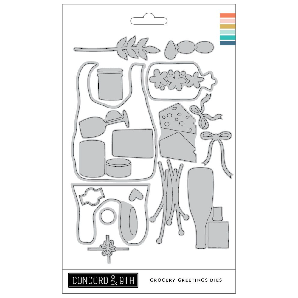 The Concord & 9th Grocery Greetings Stamp and Die Bundle is a delightful set for crafting heartfelt cards and projects. The 4 x 6 inch Grocery Greetings Stamp Set includes 12 pieces, featuring 8 uplifting sentimentsSentiments include,