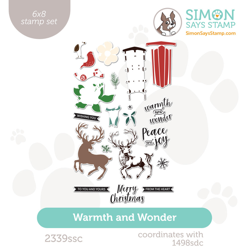 The Simon Says Stamp Warmth and Wonder stamp set brings seasonal beauty to life with elegant layering images and heartfelt sentiments. This versatile collection includes holiday and winter imagery such as a graceful deer, a cozy sled, a delicate floral cluster, a sweet bird, a festive bow, lush greenery, and softly falling snowflakes. Each design can be layered with color to add depth and dimension to your creations.