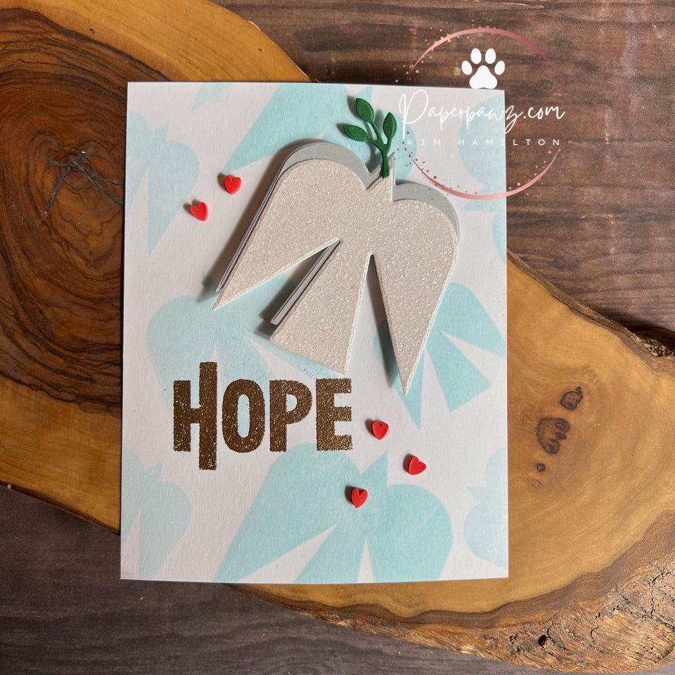 Note: The Hopeful Peacebird is the same size as the largest image in the stamp set, but it cuts the exact size with no border. The coordinating die leaves a border around the stamped image.