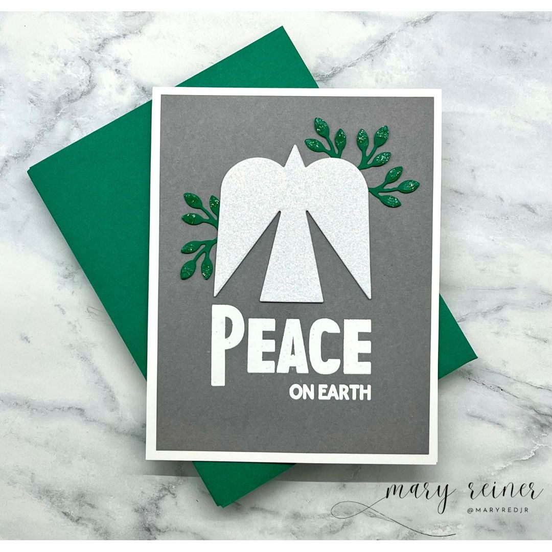 Create elegant, minimalist designs with the Simon Says Stamp Hopeful Peacebird dies. This set includes a simple, solid geometric dove and a coordinating piece of greenery for the bird to hold in its beak, symbolizing hope and peace.