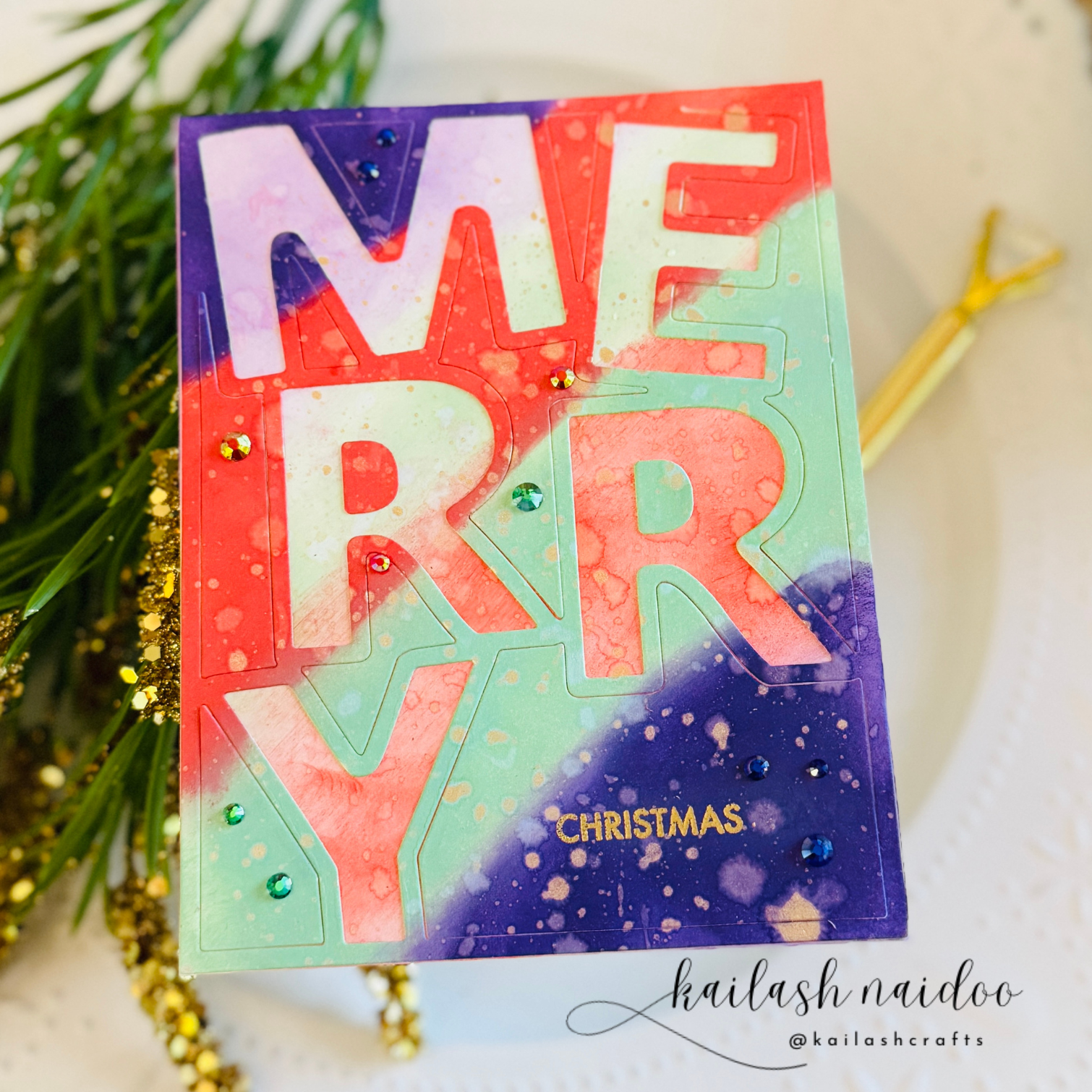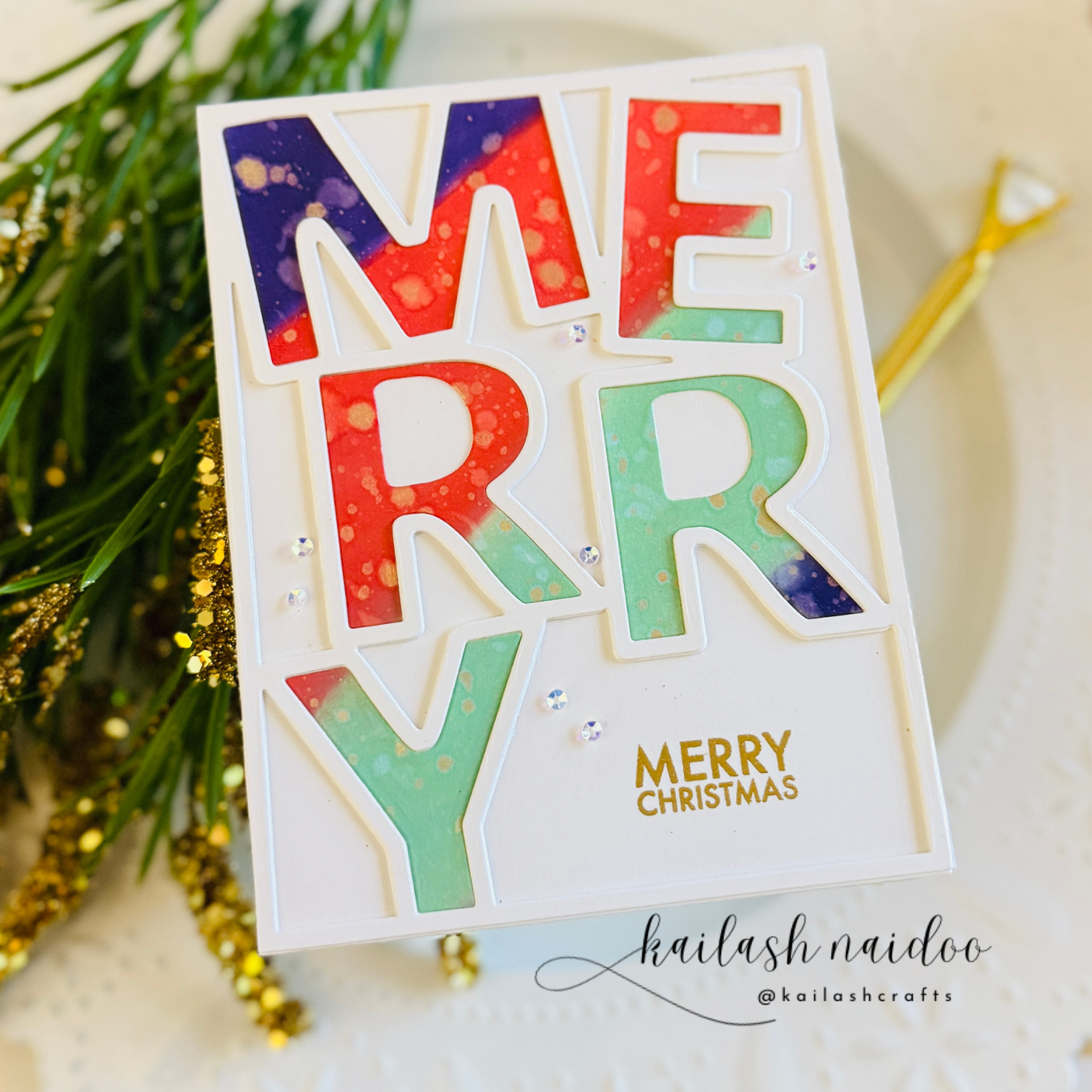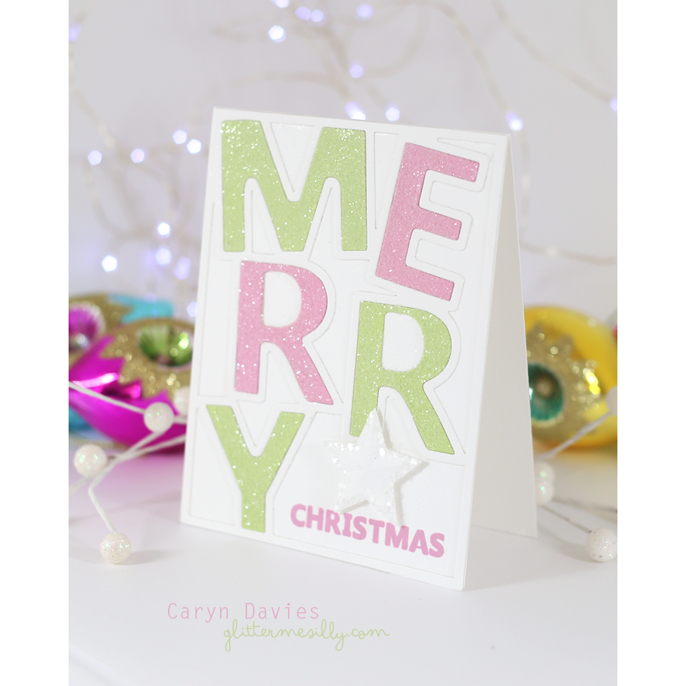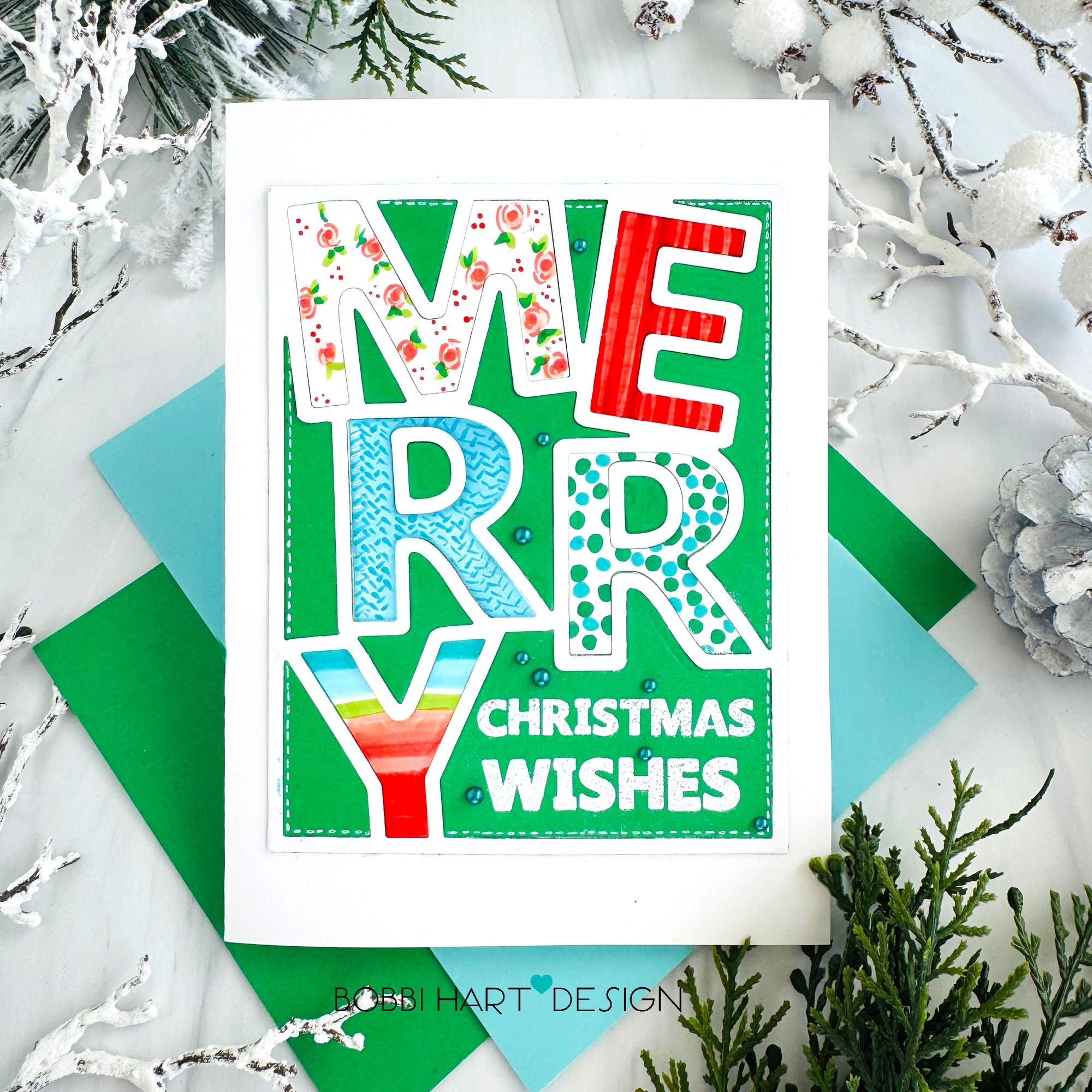 The Simon Says Stamp Merry Cover die cuts a bold, full-panel design featuring the word "MERRY" in large block letters that span most of the rectangle.