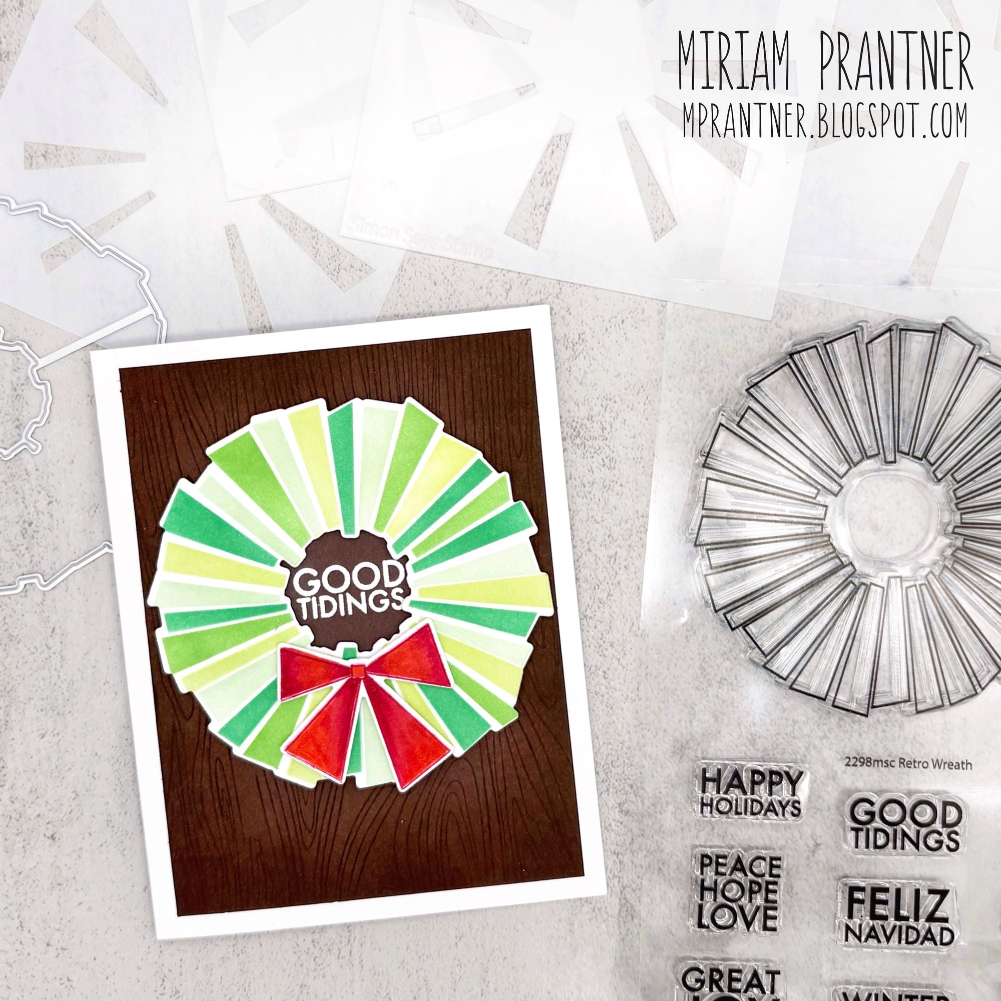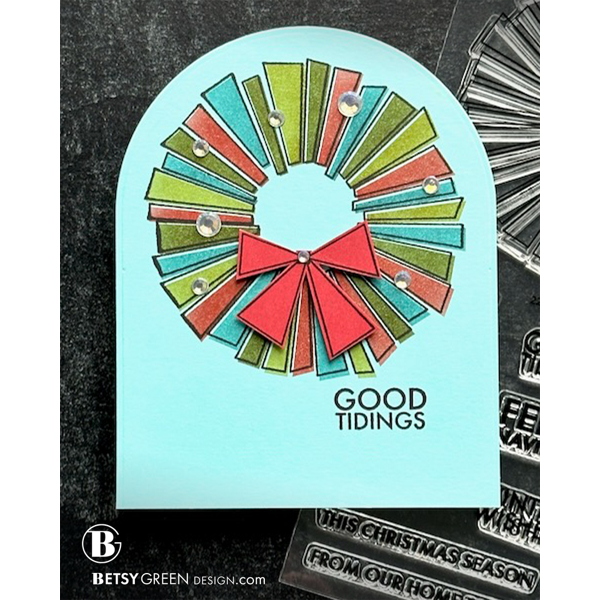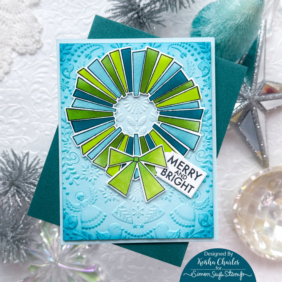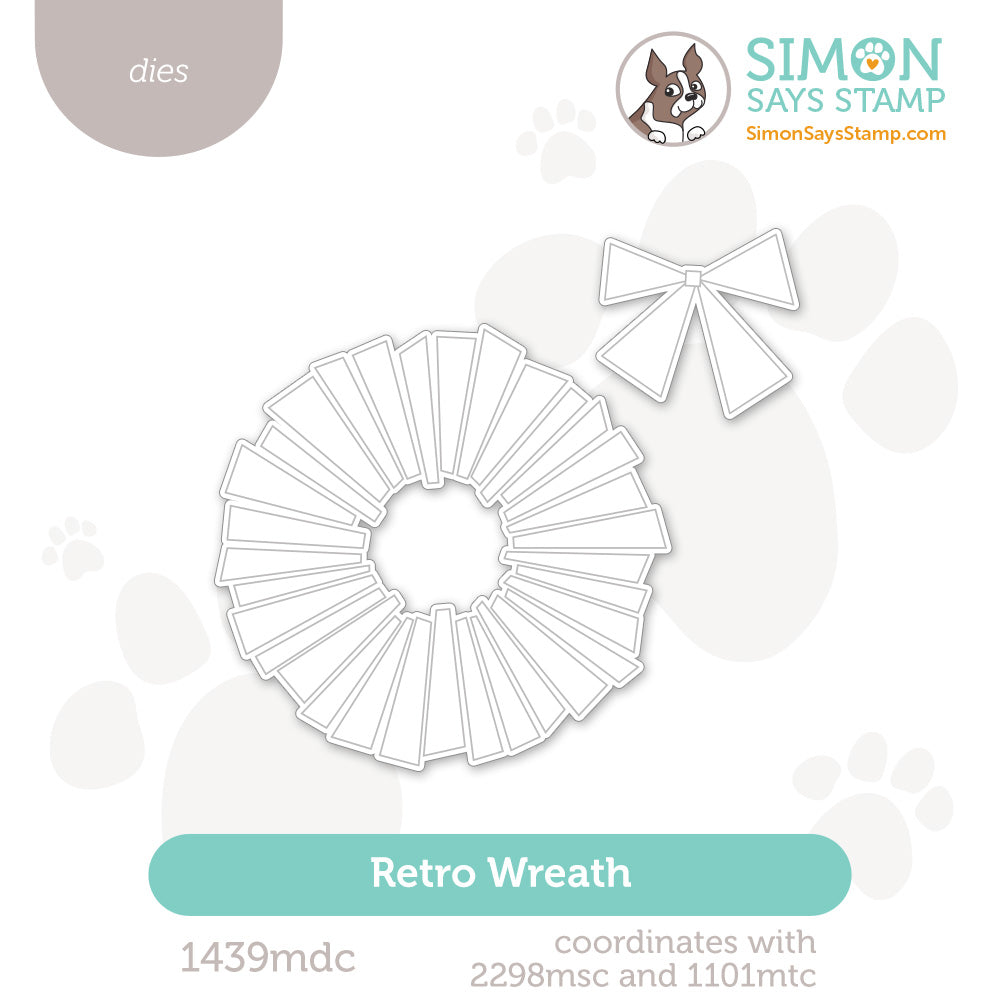 The Simon Says Stamp Retro Wreath dies coordinate perfectly with the Retro Wreath stamp set, cutting out the modern geometric wreath and bow with clean, precise edges.