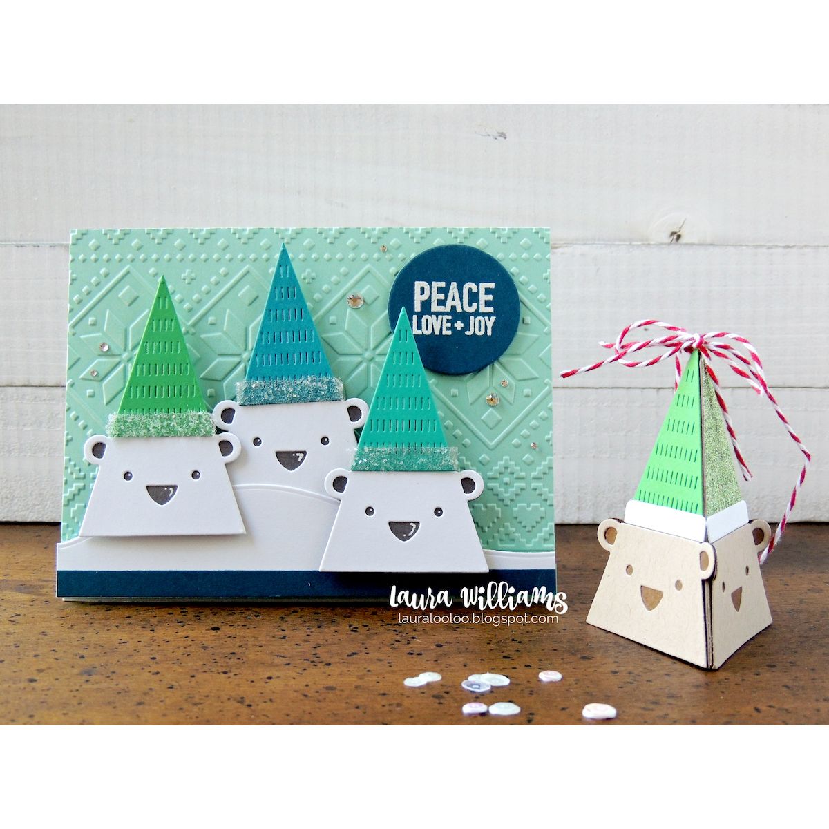 Perfect for creating 3D cards, table décor, or cute holiday scenes, this versatile die set brings interactive charm to your holiday crafting. Cut the tab die 3 times and adhere by the tabs to assemble a 3D shape, and attach a bear to one side or all three!