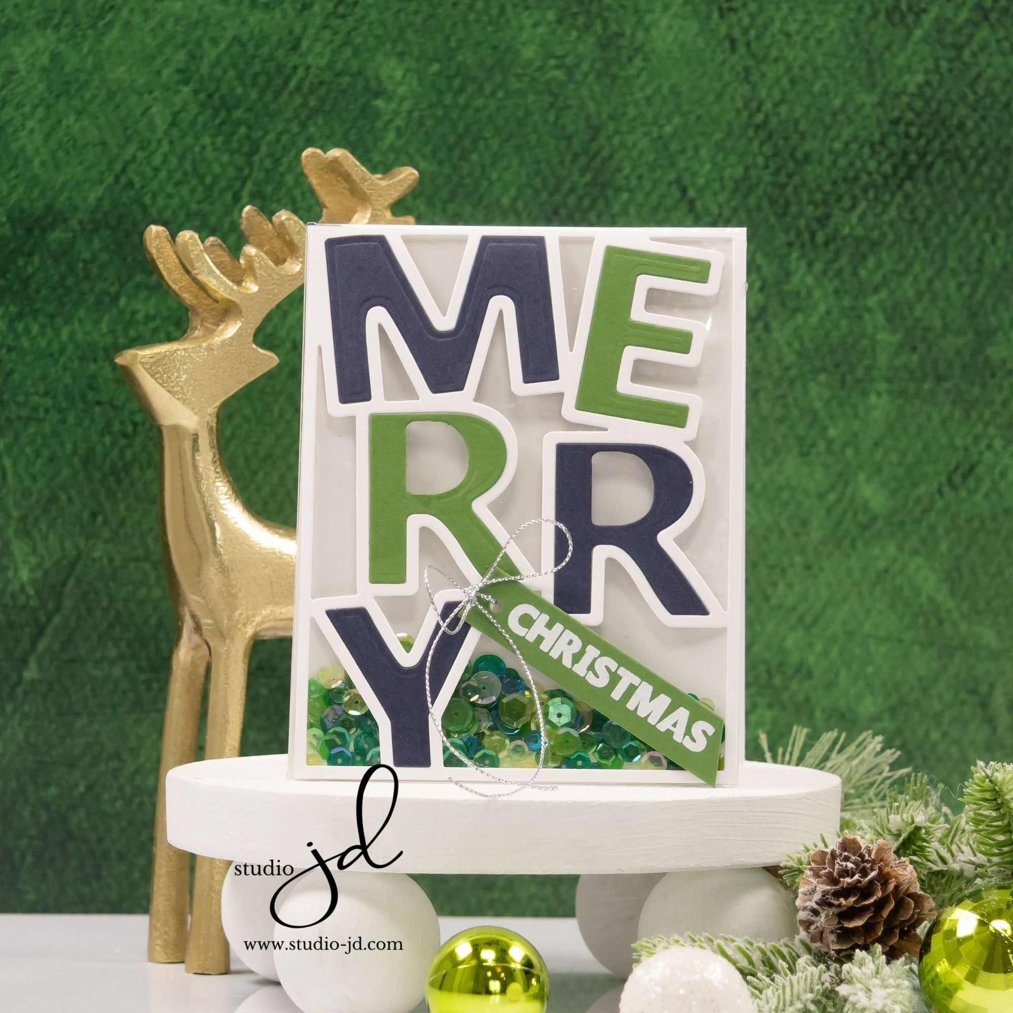 Create festive, eye-catching cards and paper crafting projects with the Merry Cover set.