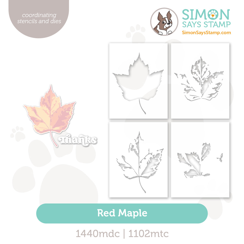 The Simon Says Stamp Red Maple stencils and dies bring the beauty of autumn leaves to your crafting with rich layering detail. This set includes multiple stencils designed to work together, allowing you to build up a dimensional and realistic-looking maple leaf by blending a variety of colors, as well as a die to cut out the leaf and a sentiment die.