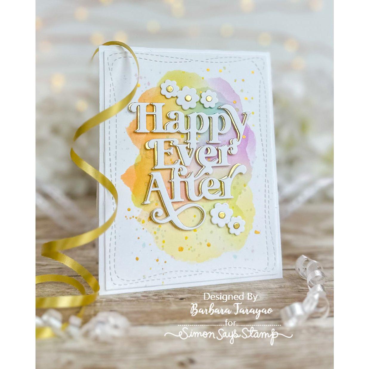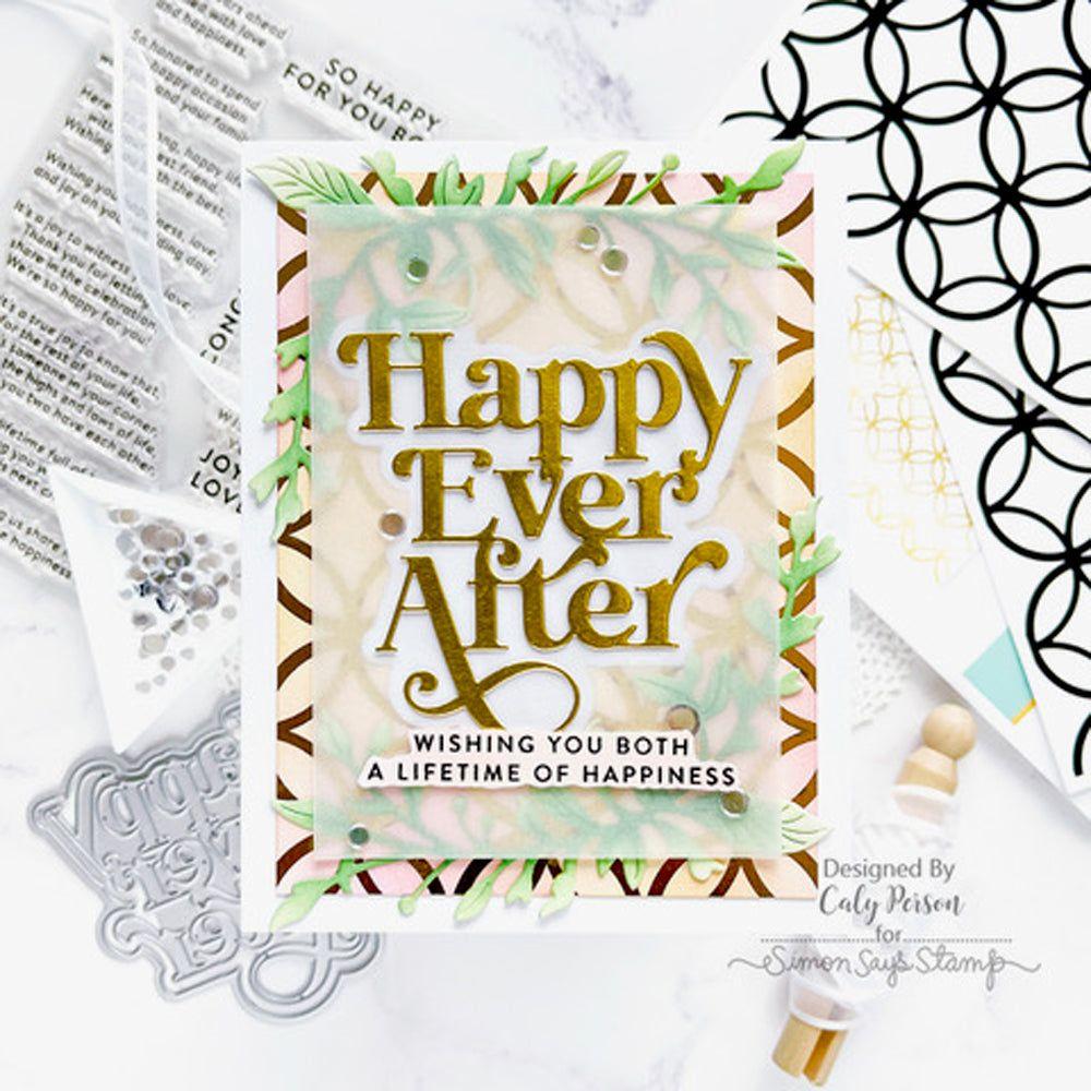 Craft joyous projects with the Simon Says Stamp Fancy Happy Ever After dies. This set includes dies to cut out the phrase "Happy Ever After" in an elegant font, along with its outline.
