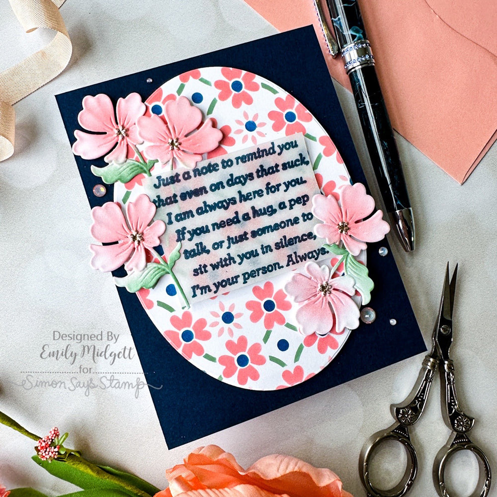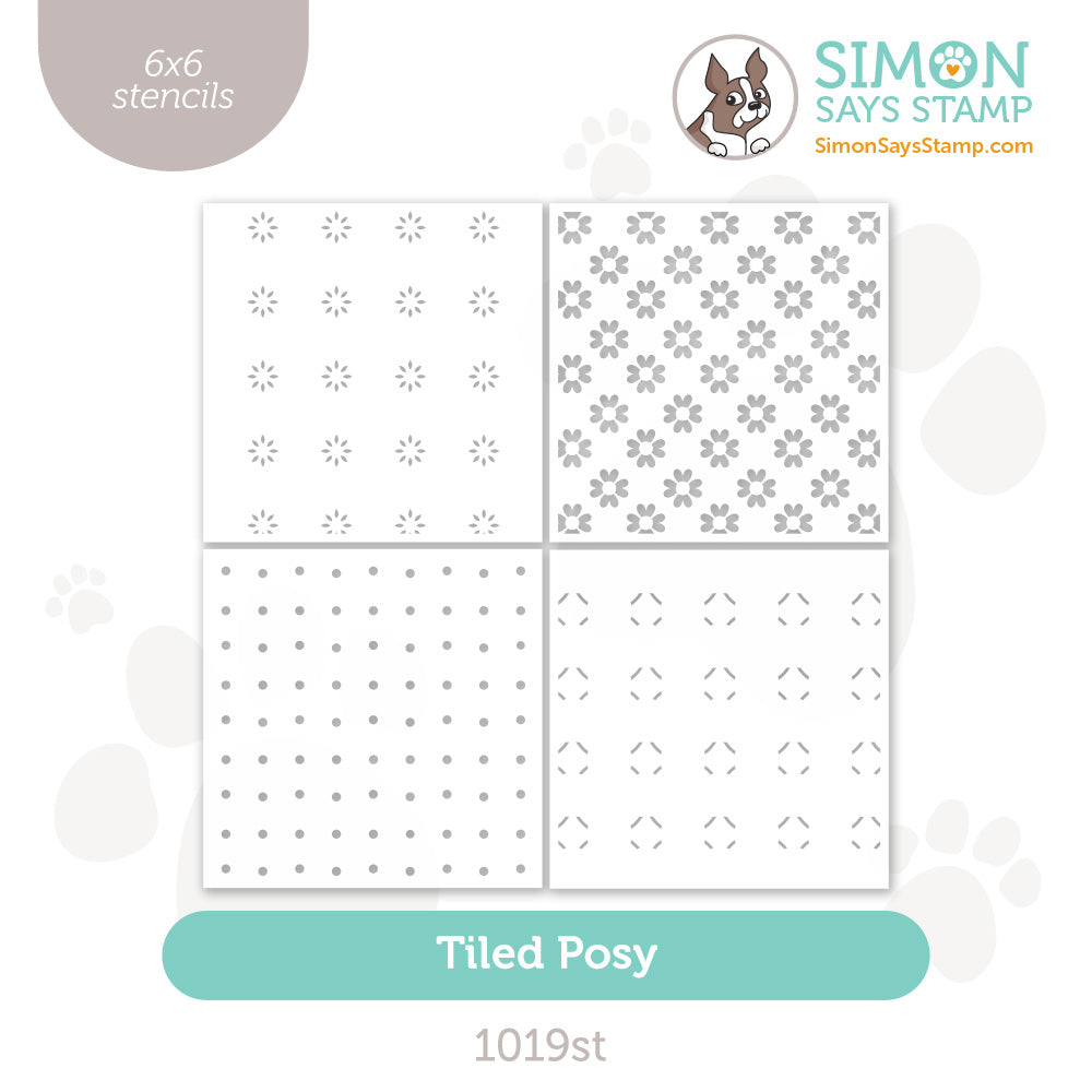 Explore the Simon Says Stamp Tiled Posy stencils! This set comprises four layering stencils designed to help you craft intricate, multi-colored backgrounds reminiscent of floral-patterned tiles.