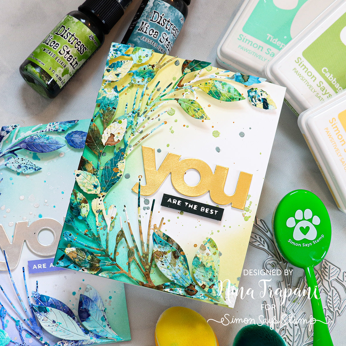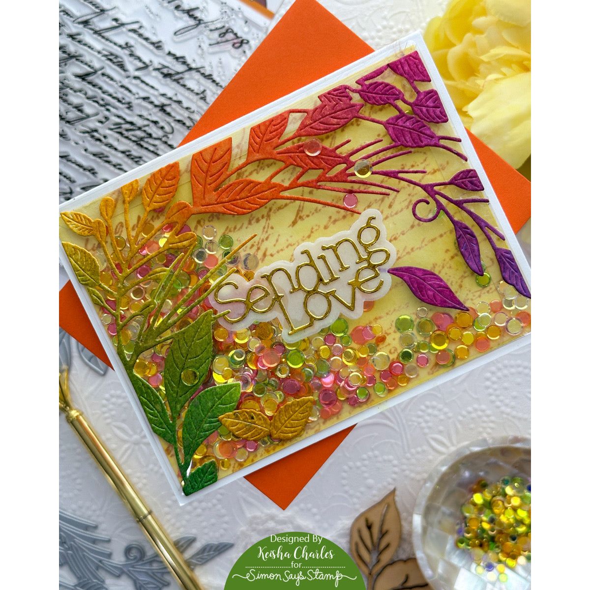 Enhance your cards with the Simon Says Stamp Arching Leaf Border die. This versatile die set allows you to create a beautifully detailed border of leafy greenery on three sides, perfectly fitting an A2 card base. Additionally, it includes an extra die to cut more leaves, providing added dimension and flexibility to your designs.