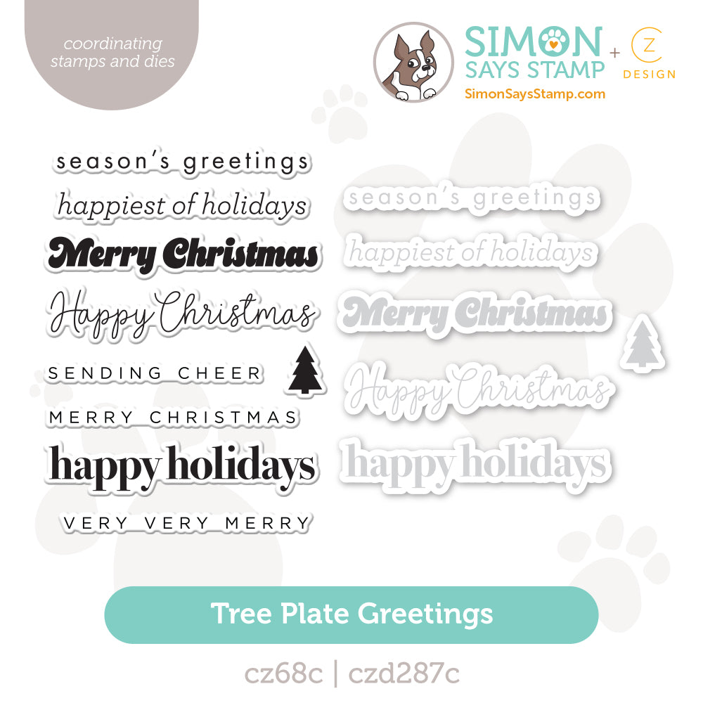 The CZ Design Tree Plate Greetings stamps and dies sets features bold holiday sentiments and coordinating sub-sentiments that pair beautifully with the Tree Plate die or stand strong on their own. Sentiments include: