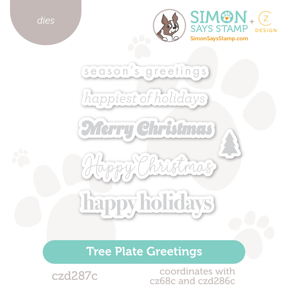 The CZ Design Tree Plate Greetings dies coordinate perfectly with the Tree Plate Greetings stamp set, cutting out the main sentiments and the small holiday tree with crisp precision.