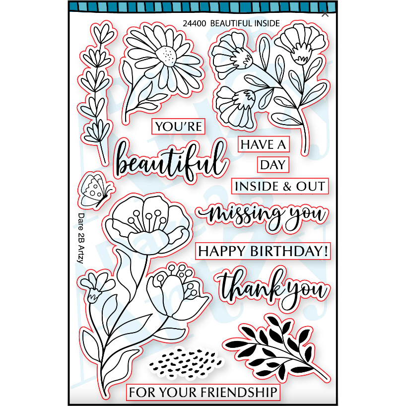 Introducing the Dare 2B Artzy Beautiful Inside Clear Stamp Set, a delightful collection designed to infuse your crafts with heartfelt sentiments and the beauty of nature. This 4 x 6-inch set features stunning botanical flowers alongside uplifting messages, including,