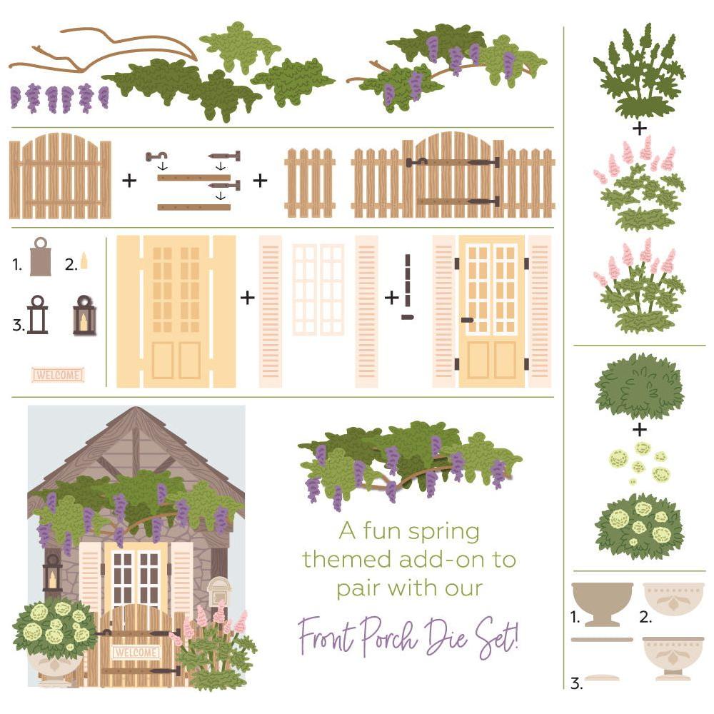Upgrade your crafting experience with Honey Bee Lovey Layers Front Porch Spring Dies! This package contains 26 pre-clipped steel craft dies with dark grey cutting lines and blue embossing details. Made of high-quality 100 percent steel, these dies are compatible with most die-cutting machines. Get creative and make beautiful projects with ease! This die set coordinates with the Lovely Layers Front Porch Dies (hbds-llfpor, sold separately)