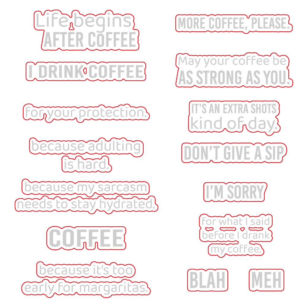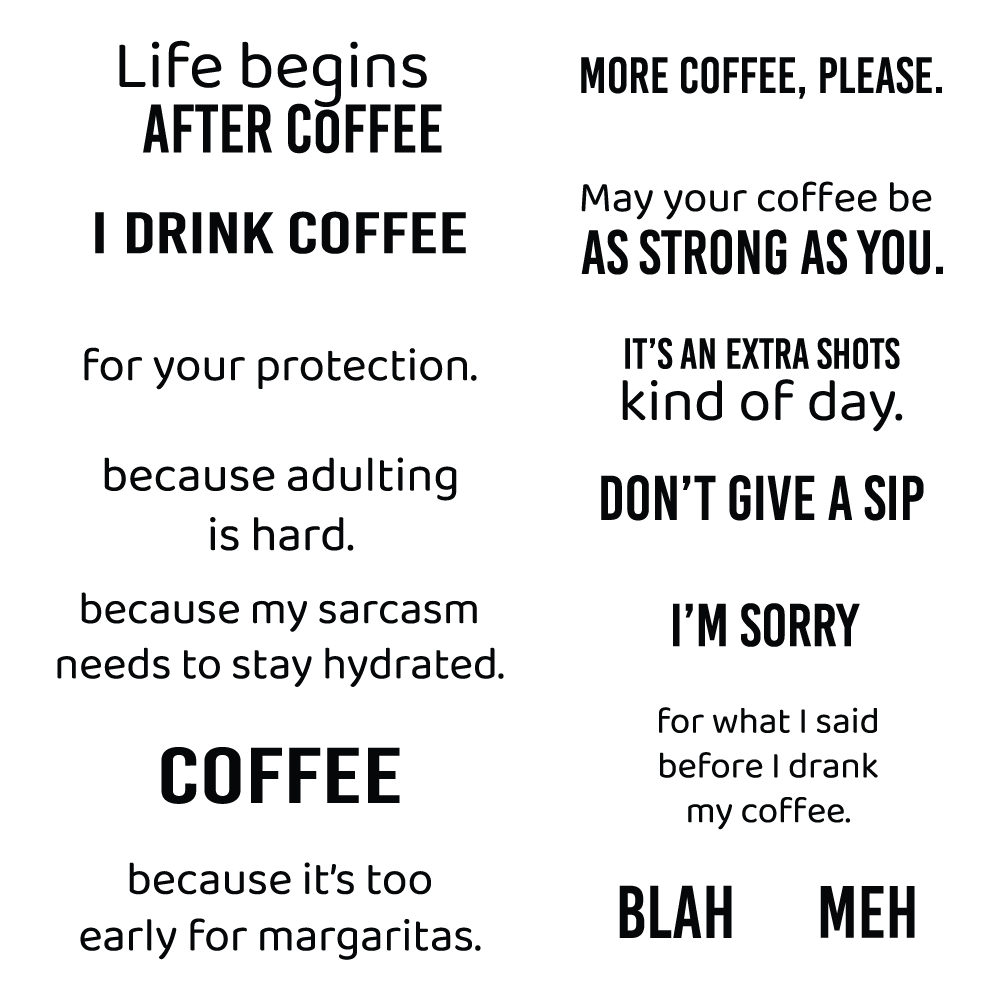 This 15-piece clear photopolymer stamp set from Honey Bee, measuring 4 x 6 inches, is perfect for spreading your coffee obsession with a fun, sassy twist. Made with top-quality materials and designed in the USA, these stamps bring energetic caffeine vibes to your crafting projects. The included coordinating Honey Cuts Dies cut out each sentiment.