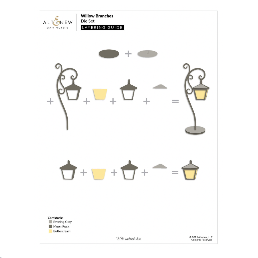 The Willow Branches Dies set is designed to coordinate with the Willow Branches Layering Stencils ALT10729, sold separately, making it easy to create soft, nature-inspired scenes. This set includes a die to cut out delicate willow branches along with a layering die for a charming garden lamp, perfect for building serene and elegant designs. Ideal for cards, scrapbook pages, and other paper-crafting projects, this versatile set adds a peaceful, organic touch to your creations.