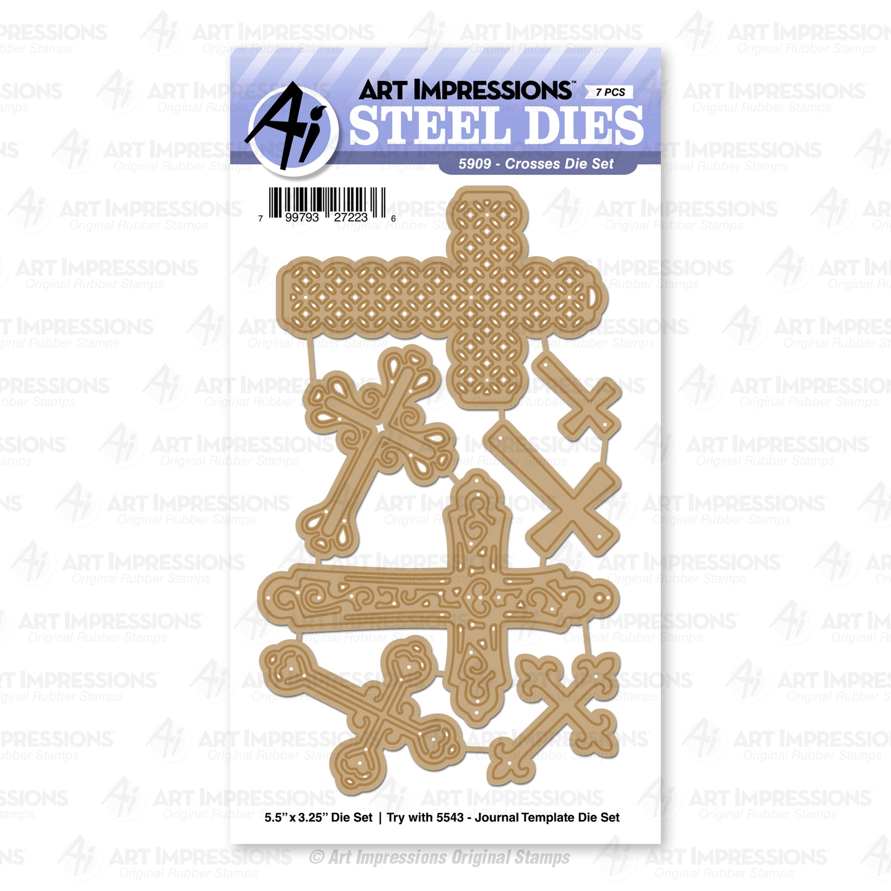 Enhance your Bible journaling with our Art Impressions Crosses Die set. This 7pc steel die set features various decorative Christian cross designs that are perfect for adding a spiritual touch to your creations. Elevate your art with our premium dies. Overall set dimensions 5.5 x 3.25 inches. Largest cross is approximately 3 x 2.25 inches and smallest cross is approximately 0.7 x 0.5 inches.