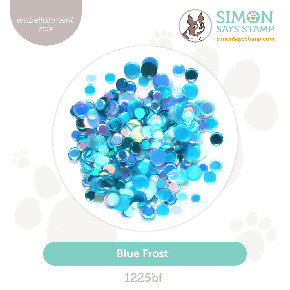 Bring icy color to your crafts with the Simon Says Stamp Blue Frost Embellishment Mix.