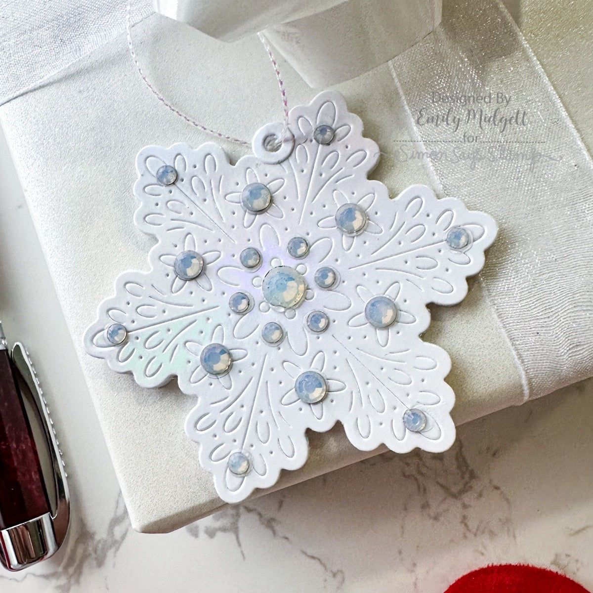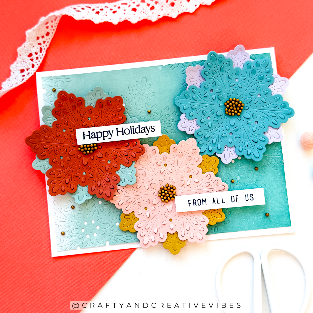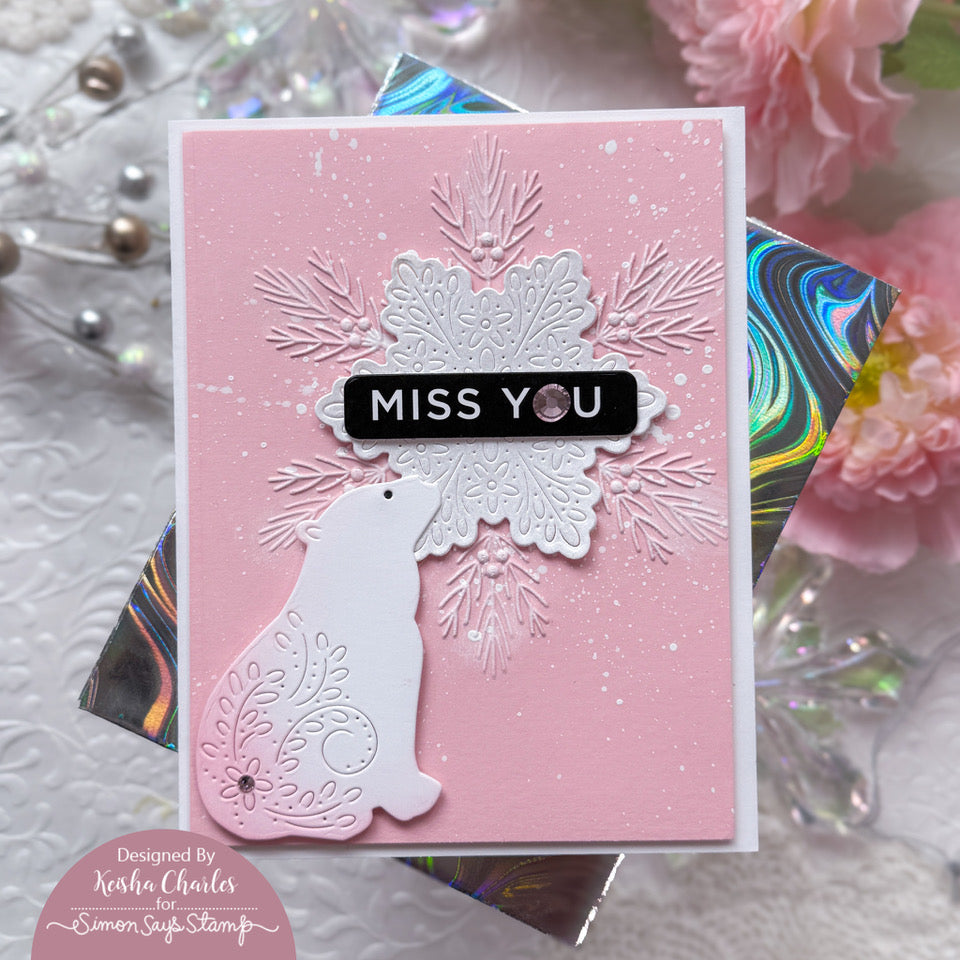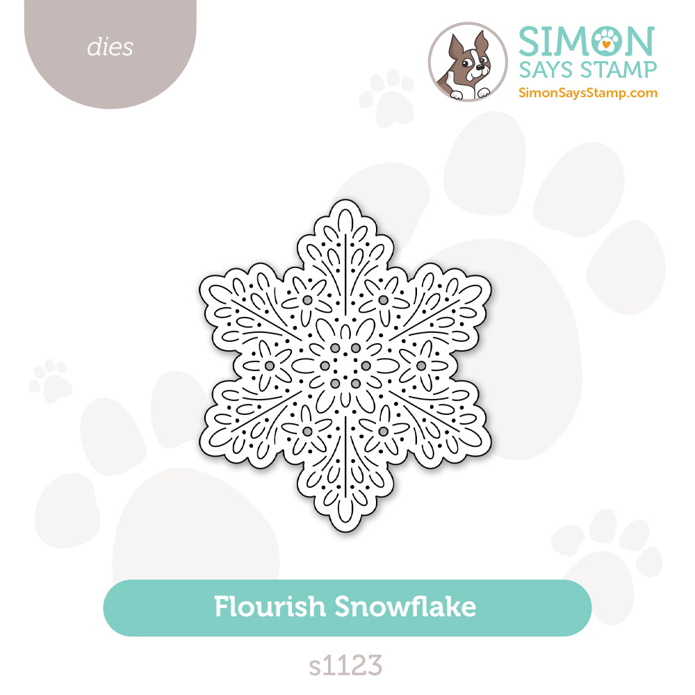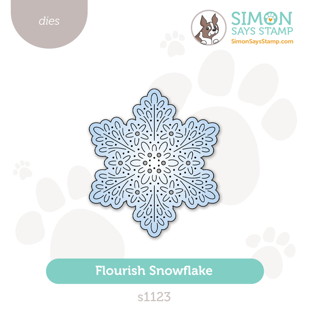 The Simon Says Stamp Flourish Snowflake dies cut a graceful six-point snowflake with delicate embossed details that bring elegance and texture to winter projects.