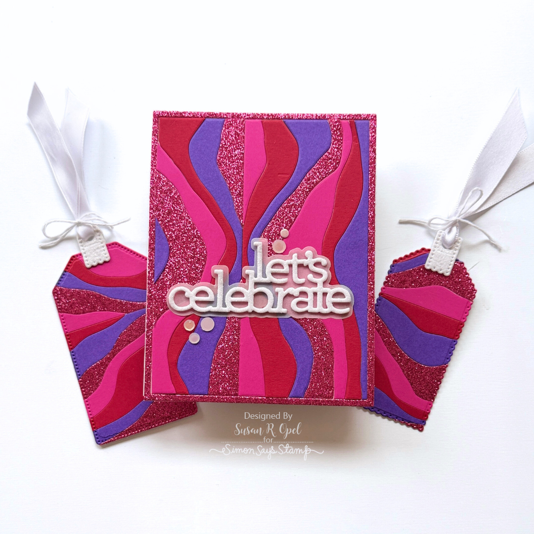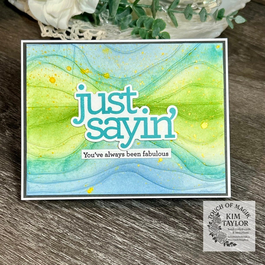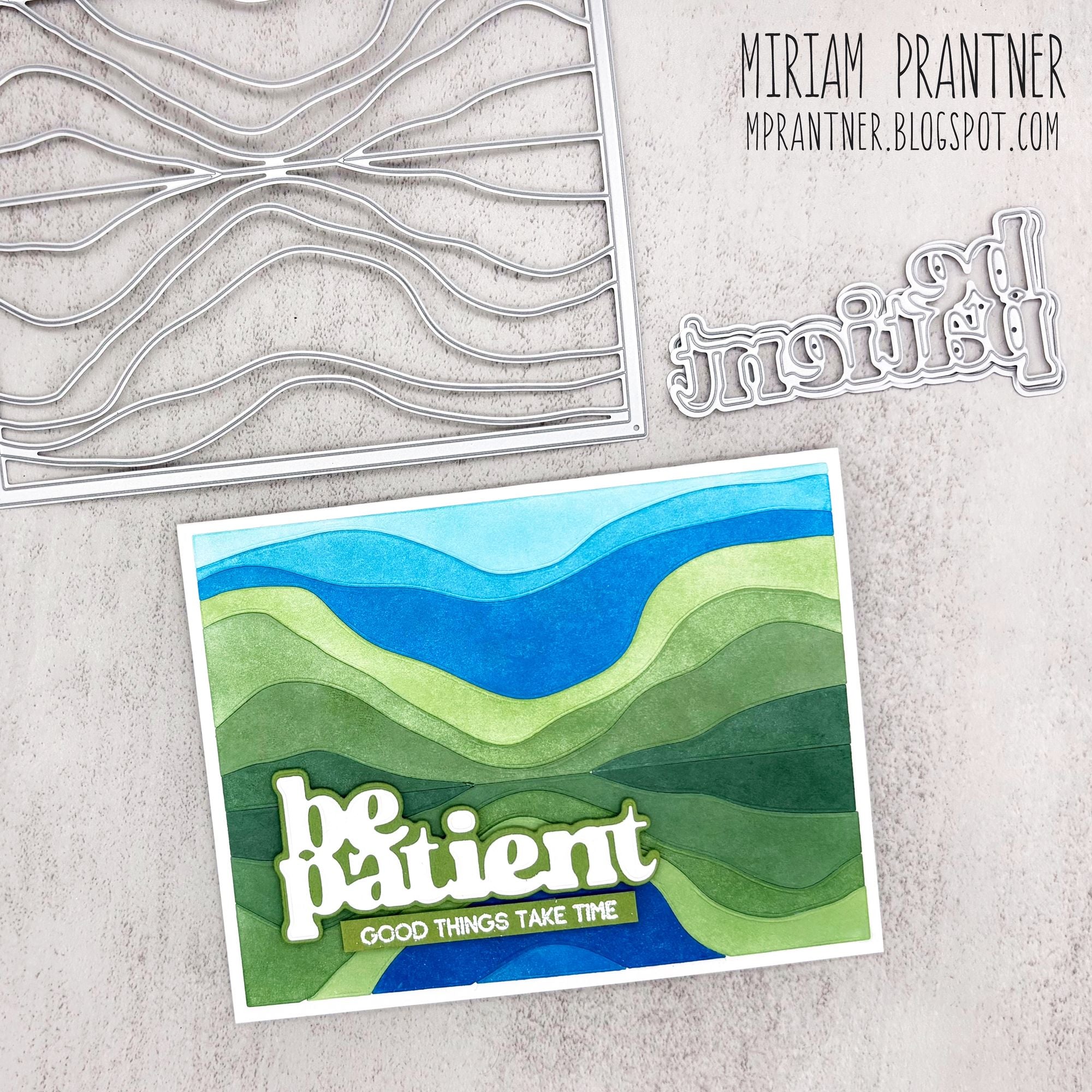The Simon Says Stamp Mountain Horizon die plate cuts an abstract A2 horizontal background featuring a clean horizon line and flowing, wavy shapes that resemble layered mountain ranges.