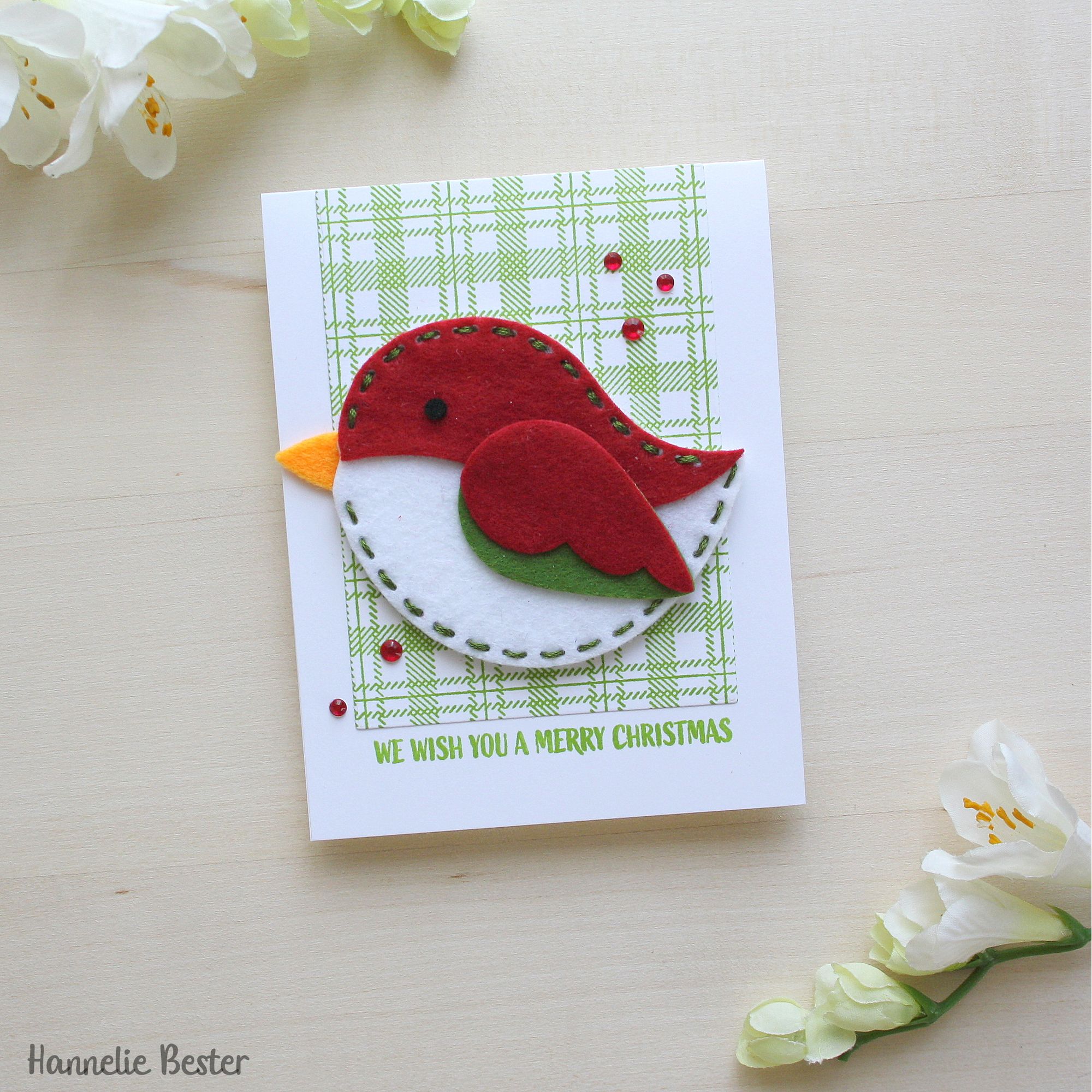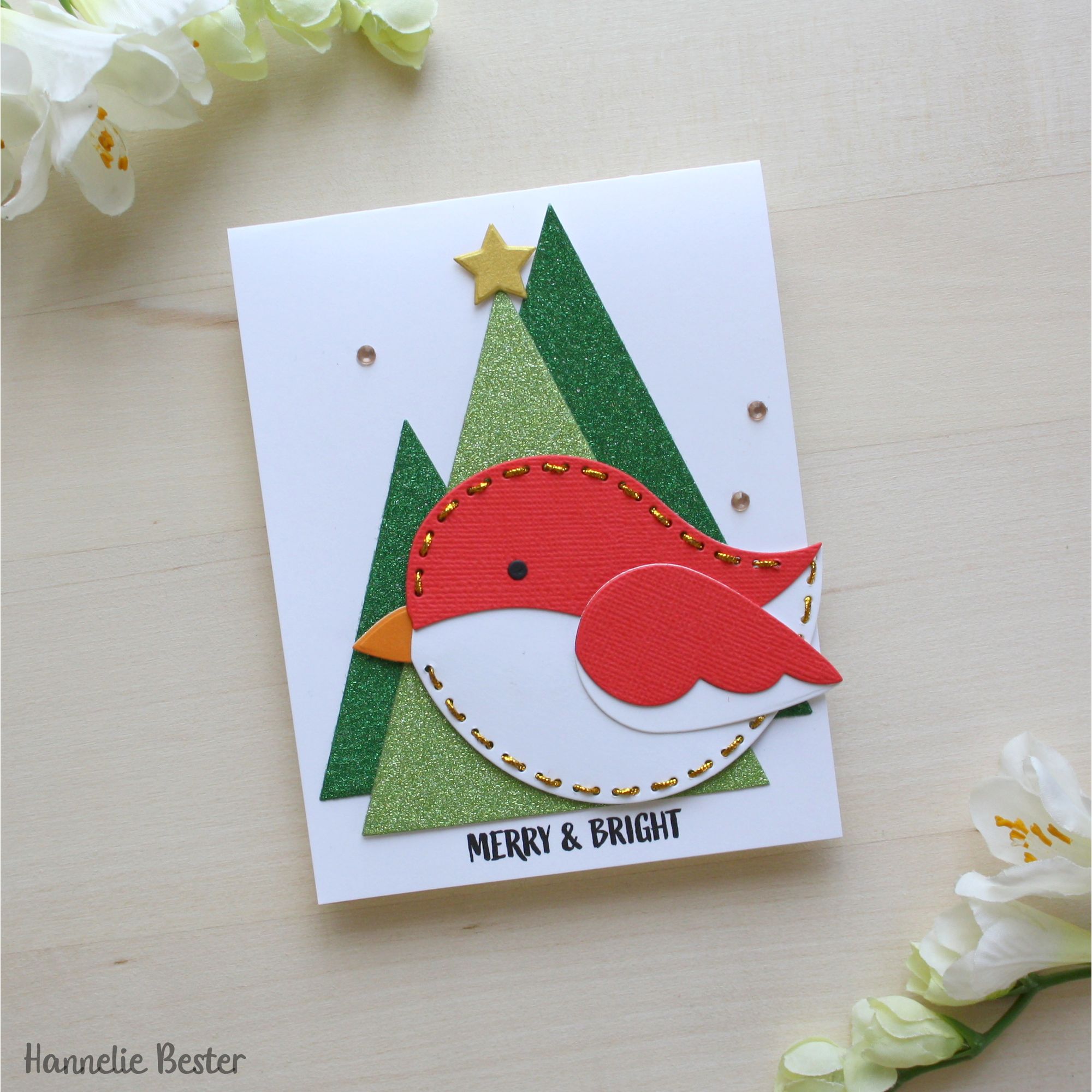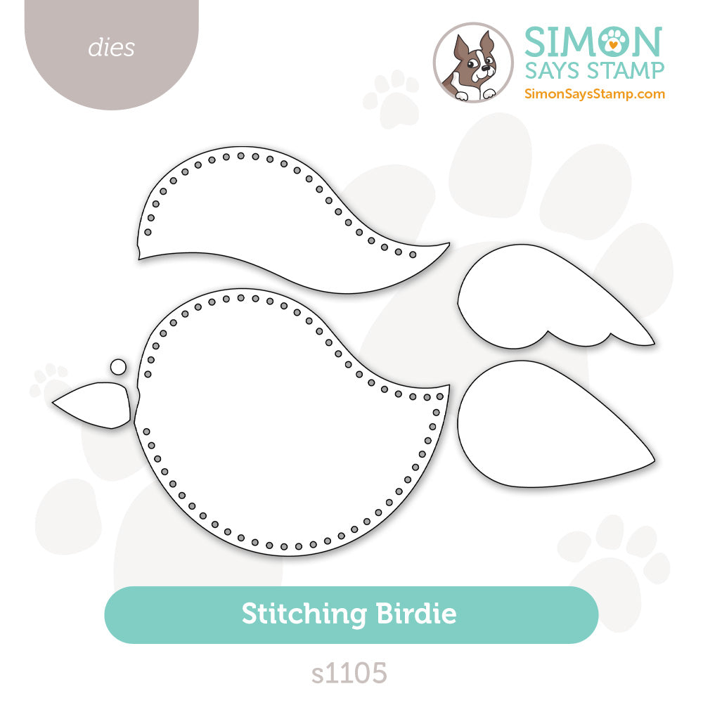 The Simon Says Stamp Stitching Birdie dies cut all the pieces needed to create a sweet little bird with a tiny beak and a scalloped wing. Stitching holes around the edges let you add homespun charm with thread or faux stitching.