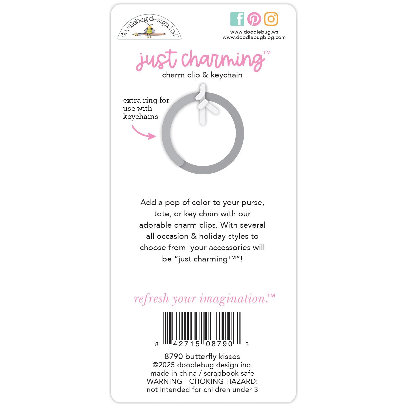 Add a touch of whimsy to your daily routine with our Doodlebug Butterfly Kisses Just Charming Keychain Clip. Featuring a large dual colored butterfly and smaller floral and butterfly accents, this clip will elevate your style while keeping your keys and bags secure. The perfect accessory for the fashionable and sophisticated individual. Butterfly is approximately 1.5 x 1.25 inches. Overall piece is approximately 4 x 1.5 inches.