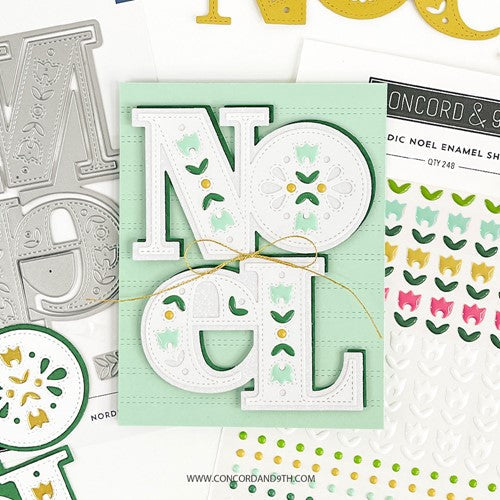 The Nordic Noel Enamel Shapes were designed to add dimension and shine to the sentiment in the coordinating Nordic Noel Dies 11451. They can also be used on their own to embellish other crafty projects! This 5x8 package contains 231 shapes. Includes 81 flowers, 81 leaves and 75 dots in Poppy, Parsley, Sea Glass, Evergreen, Stardust, Honeysuckle, and White.