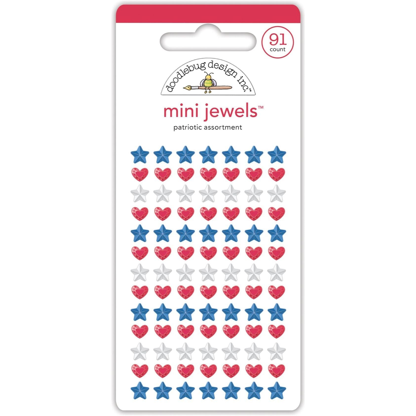 Add a quirky touch to your crafts with this 91-piece set of Doodlebug Patriotic Assortment Mini Jewels! Featuring blue stars, red hearts, and silver stars, these cute and playful accents are perfect for showing off your patriotic pride. Sized just right and easy to attach, they'll add the perfect finishing touch to your projects! Add sparkle and shine to your crafts with this 3.75 x 2.5 inch sheet of mini jewels!