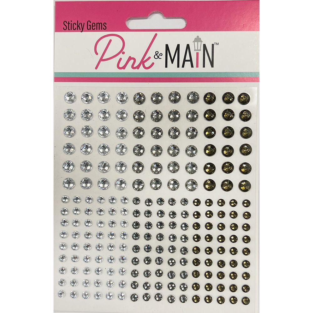 Pink and Main The Neutrals Sticky Gems are adhesive-backed gems in elegant silver tones. Perfect for adding a touch of sparkle and shine, these gems make it easy to embellish cards, tags, and other creative projects with a polished finish.