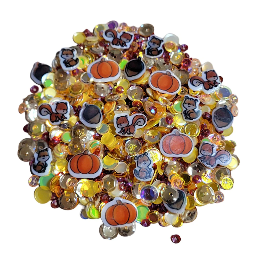 Celebrate the cozy charm of fall with the Golden Harvest Embellishment Mix from Sweet November Stamps! This playful sequin blend is filled with warm golden yellows, glowing ambers, and sparkling iridescents that capture the beauty of the season. Nestled inside are delightful SNS exclusives featuring pumpkins, acorns, and the sweetest little squirrels and chipmunks—perfect for adding a whimsical woodland touch to your projects.