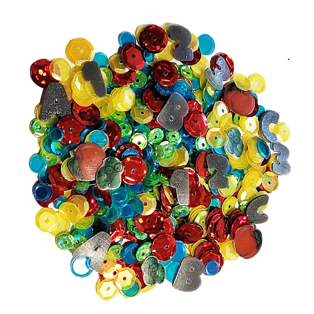 Prepare for back-to-school season with the Sweet November Stamps School Daze Embellishment Mix, perfect for adding a playful touch to any project. This vibrant mix features blue, green, yellow, and red sequins, along with unique SNS elements like A, B, C, 1, 2, 3, adorable apples, and a book-loving worm!