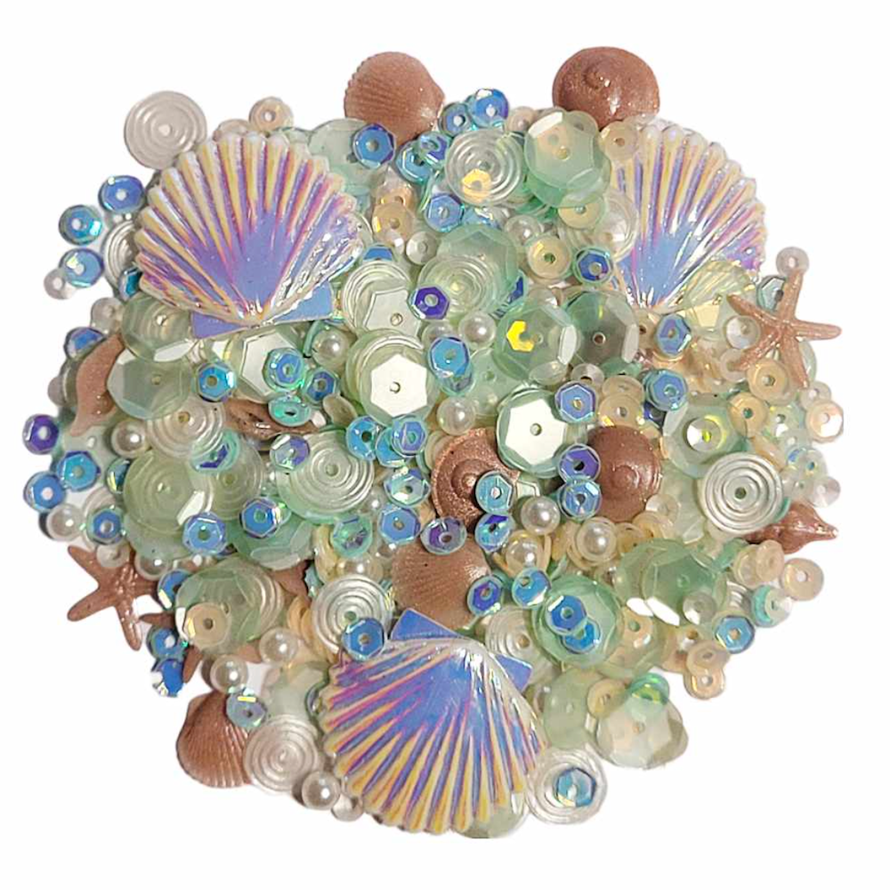 Experience the sandy beach vibe with Sweet November Stamps' The Deep Dolphin Dance Embellishment Mix! Dive into soft neutrals with pearl, cashmere, ivory, and blue and green hues, accented by 12mm SNS seashell motifs. Each packet contains approximately 1 TBLS of individually crafted elements made from photopolymer resin, ensuring uniqueness. Avoid storing in direct sunlight for extended periods.