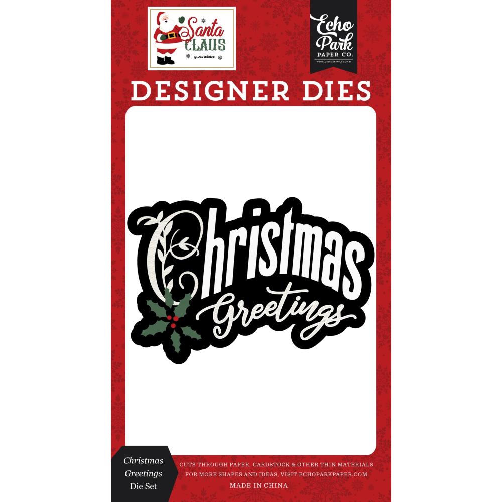 Echo Park Christmas Greetings Die is ideal for adding festive flair to cards, scrapbooks, journals, gift tags, bookmarks, and more. Just cut out the shapes and personalize them your way! Use them to accent other die cuts or decorate with paints, powders, stamps, stencils—the only limit is your creativity. Use the die cut solo or mix it with other designs. Compatible with most popular die cutting machines (sold separately). Includes one die measuring 3.2 x 2.1 inches. Let the holiday crafting fun begin!