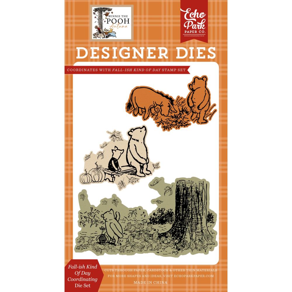 Echo Park Fall-ish Kind Of Day Dies are perfect for adding charming shapes to your cards, scrapbooks, journals, gift tags, bookmarks, and more. Simply cut out the designs and decorate them your way—with paints, powders, stamps, stencils, or anything else you imagine. Use these dies alone or mix and match with others to create unique projects. Compatible with most popular die cutting machines (sold separately), this set features Winnie the Pooh, Piglet, and Eeyore enjoying fall fun amid a maple tree, a cozy bench, and pumpkins. Let your creativity blossom with this delightful die set!