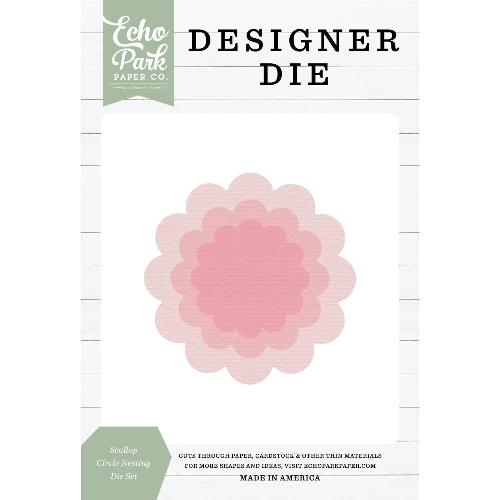Expertly cut various shapes with the Echo Park Scallop Circle Nesting Dies. Ideal for a variety of crafts such as cards, scrapbooks, journals, gift cards, and bookmarks. Easily personalize with your desired techniques and materials. Create eye-catching designs by pairing with other dies or adding embellishments like paints, powders, or stamps. The options are endless. Compatible with many popular die cutting machines (sold separately). Each pack includes a single die set.