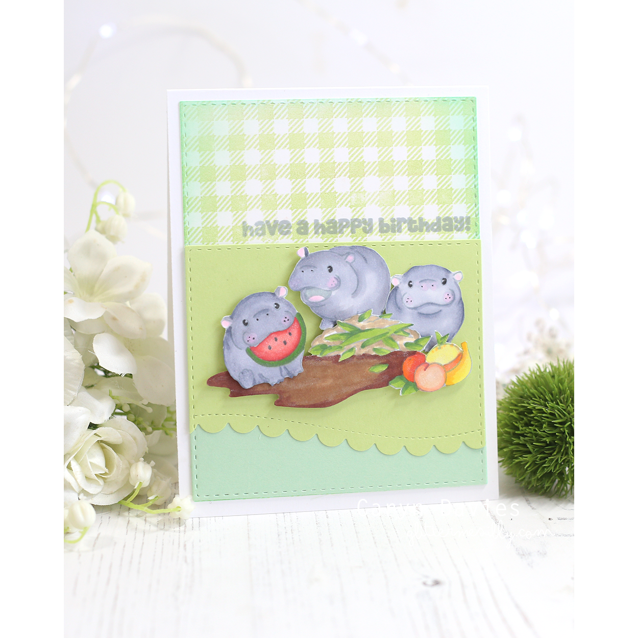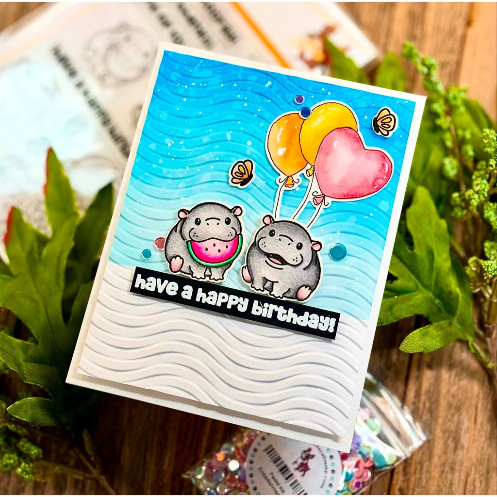 The Simon Says Stamp Hip Hip Hooray stamp and die set is bursting with charm, featuring darling illustrations of joyful hippos ready to bring a smile to any project! Alongside the happy hippos, you’ll find playful butterflies and a little pool for them to wallow in, perfect for creating fun, lighthearted scenes. The dies cut out all of the sweet images.