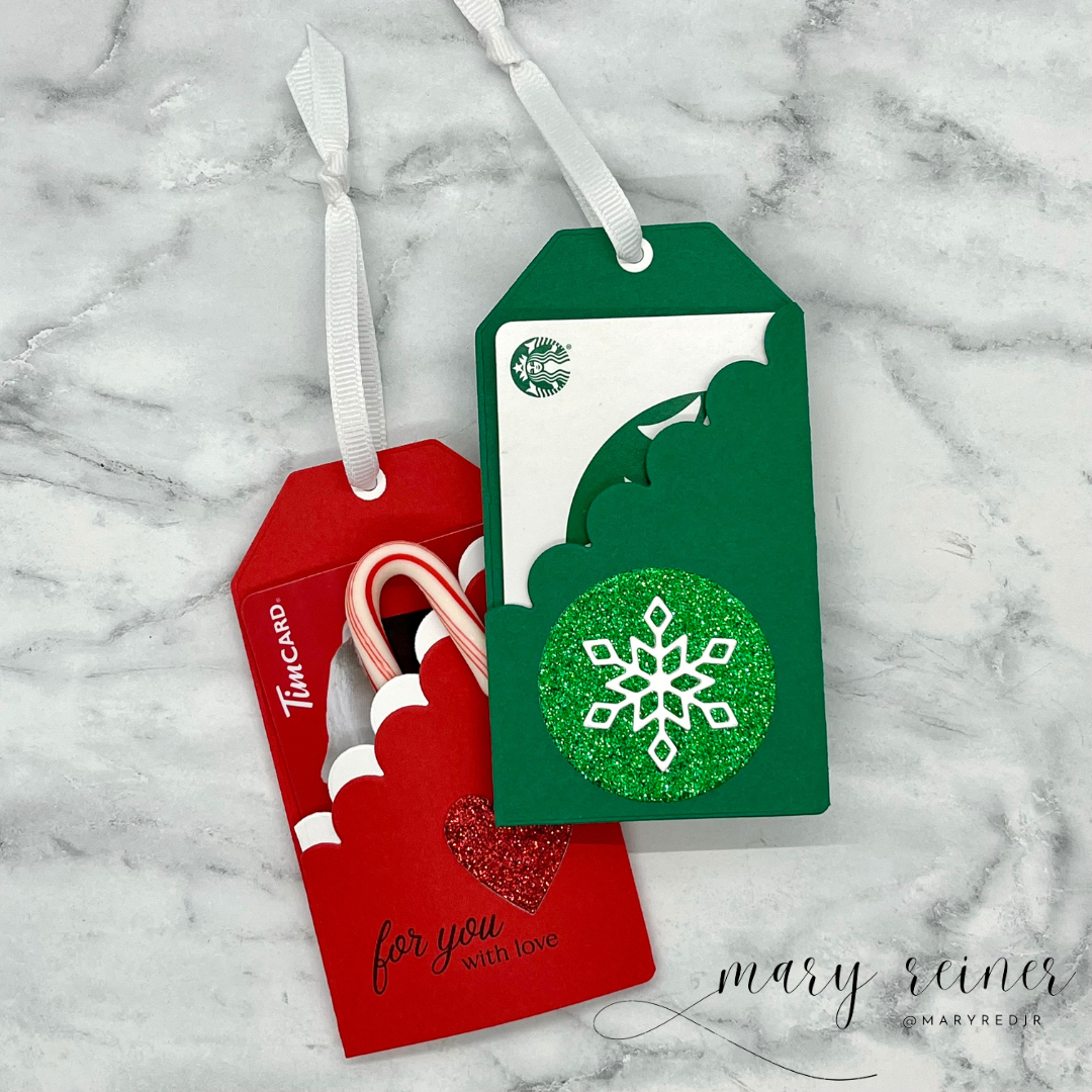 The Simon Says Stamp Gift Card Pocket Tag die set offers a clever and festive way to present a gift card. This versatile die cuts a tag shape with a flap and a diagonal scalloped pocket, perfectly designed to hold a gift card once assembled.