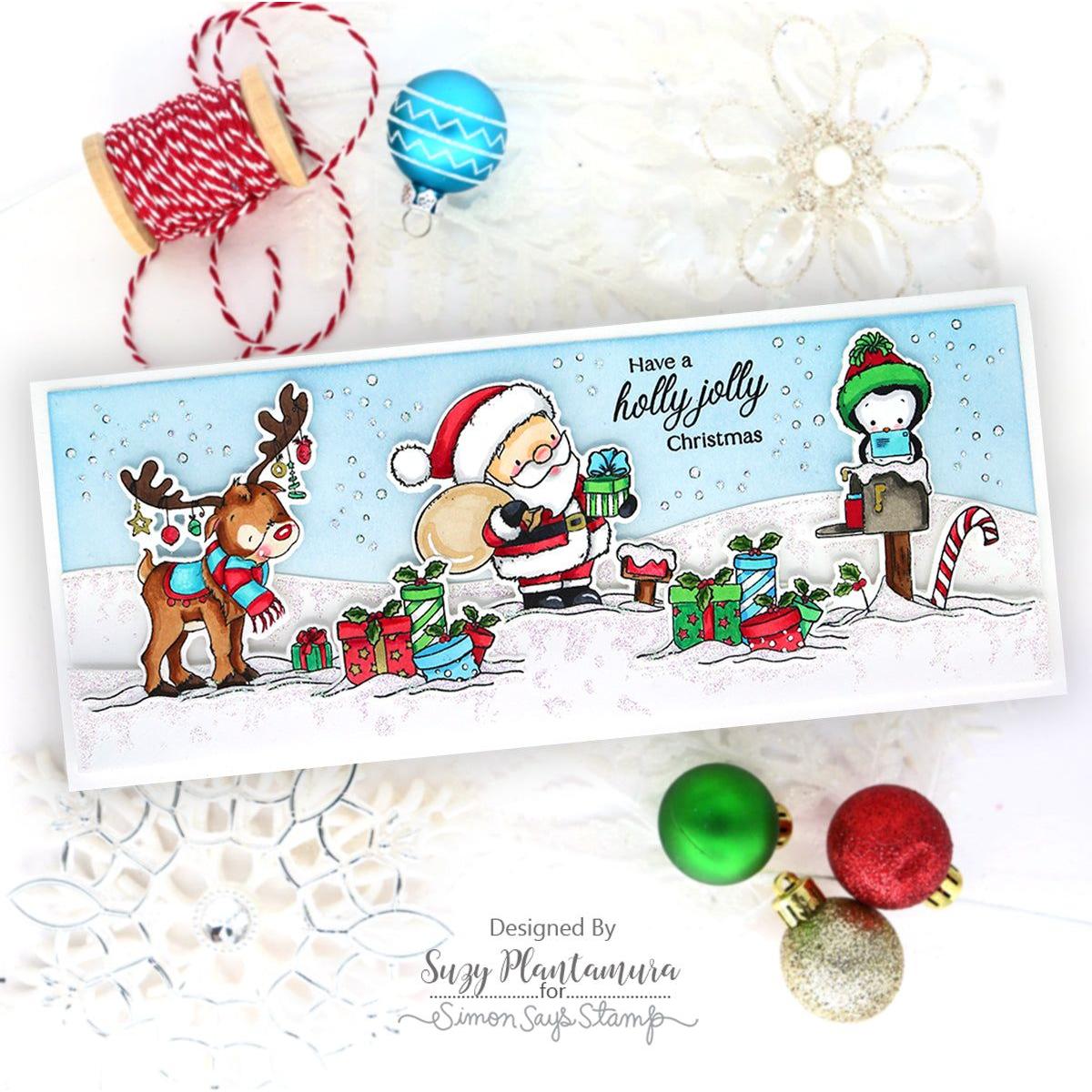The Simon Says Stamp Jolly Christmas dies are the perfect companion to the Jolly Christmas stamp set, making it easy to add dimension and detail to your holiday crafting. These precision dies cut out all the sentiments and all but the smallest images from the set, including Santa, the reindeer, the penguin, the elf with gifts, and more.