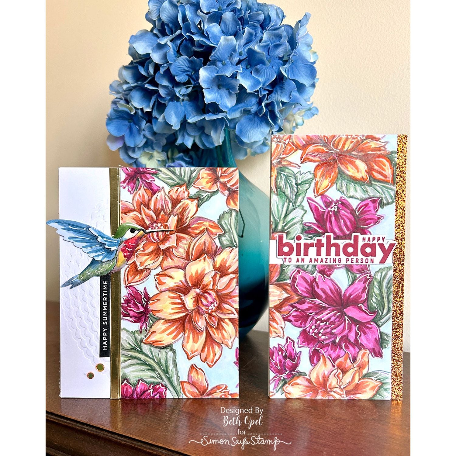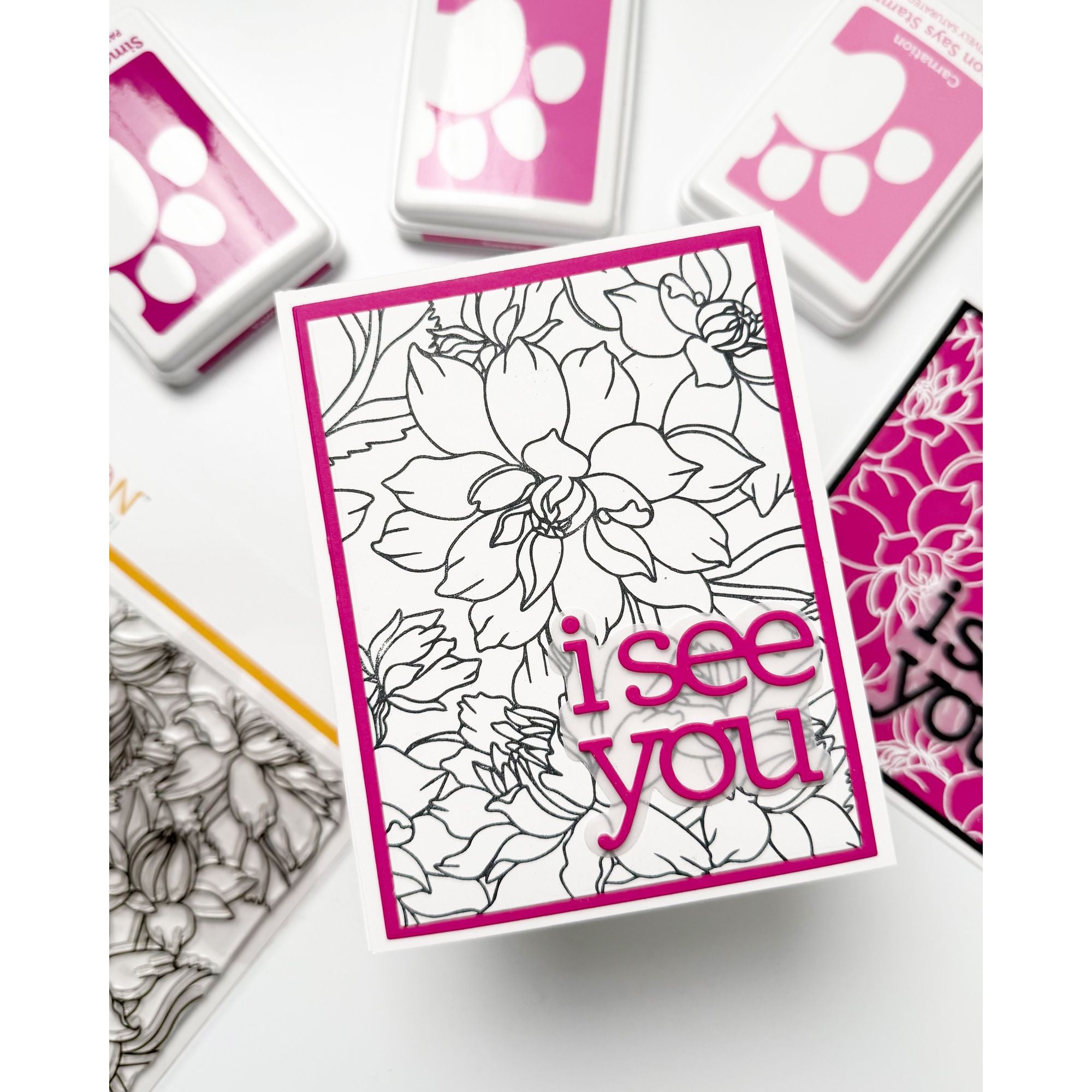 Simon Says Stamp Dahlia Background clear stamp fills your projects with the lush beauty of blooming dahlias. This large clear stamp features an intricate background of layered, informal decorative dahlias in full bloom, their softly curving petals creating rich depth and texture.