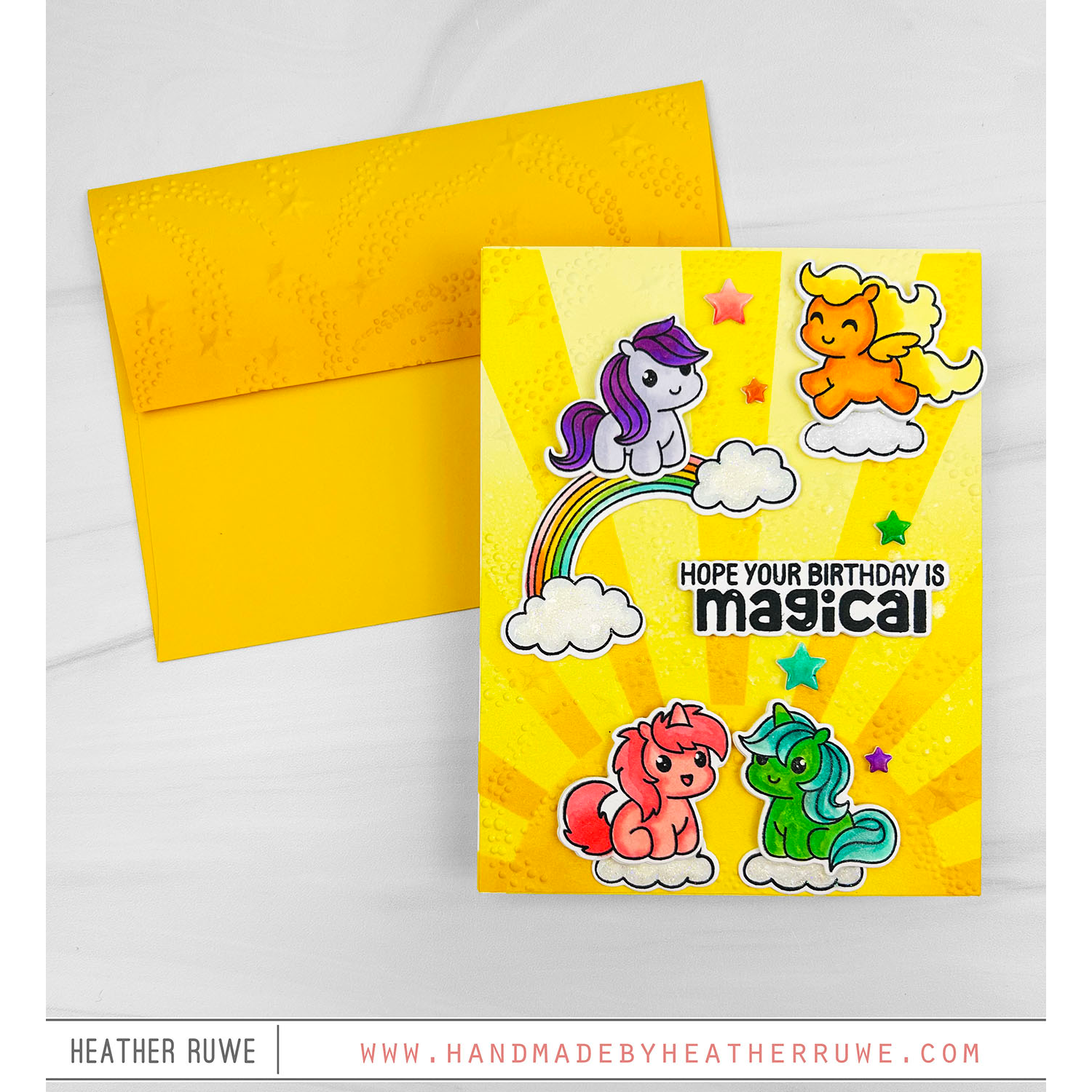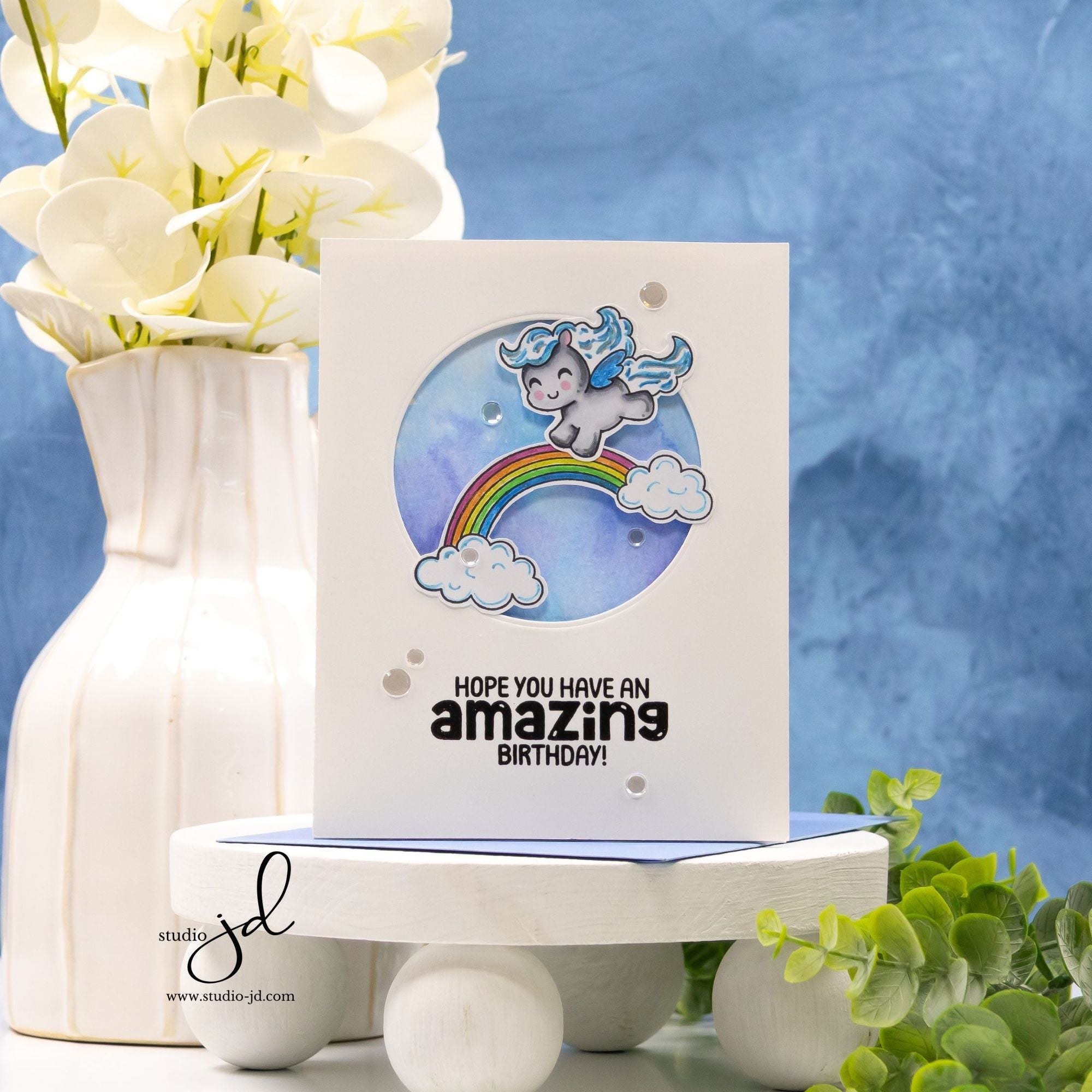 Add dimension and magic to your projects with the Simon Says Stamp Pocket Ponies dies. Designed to coordinate with the Pocket Ponies stamp set, this die collection cuts out all of the adorable pony and unicorn images, along with the stars, clouds, and rainbow.