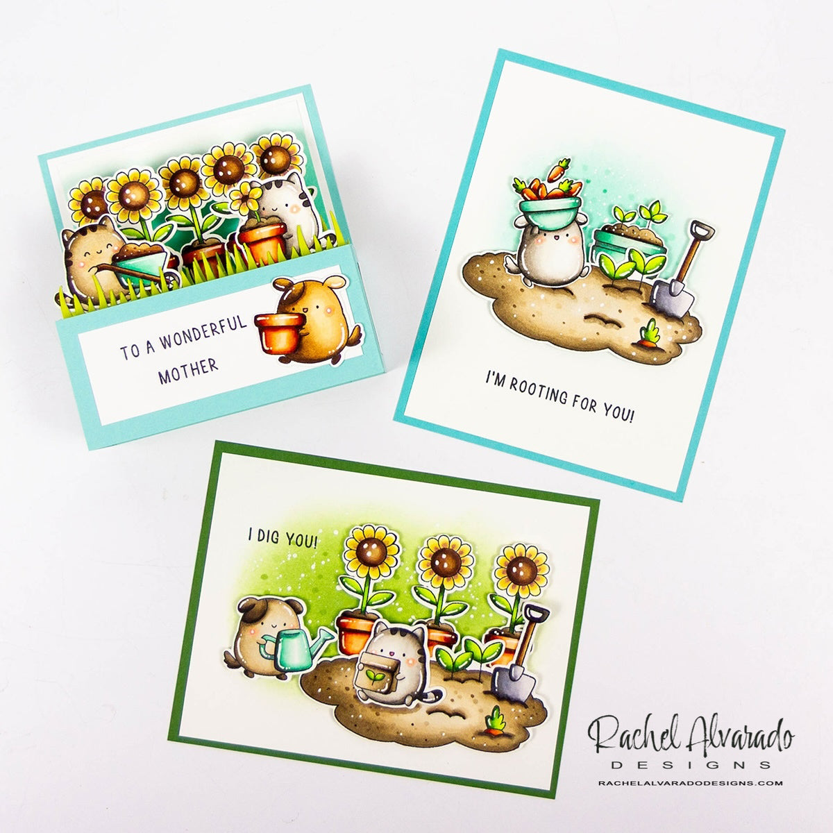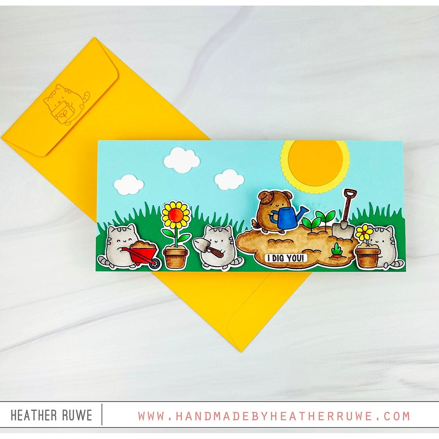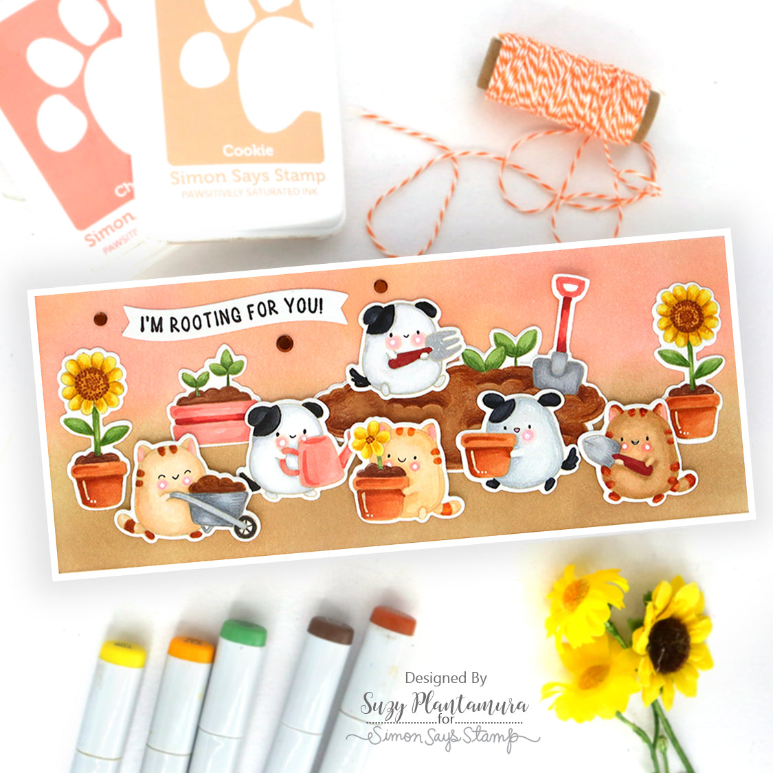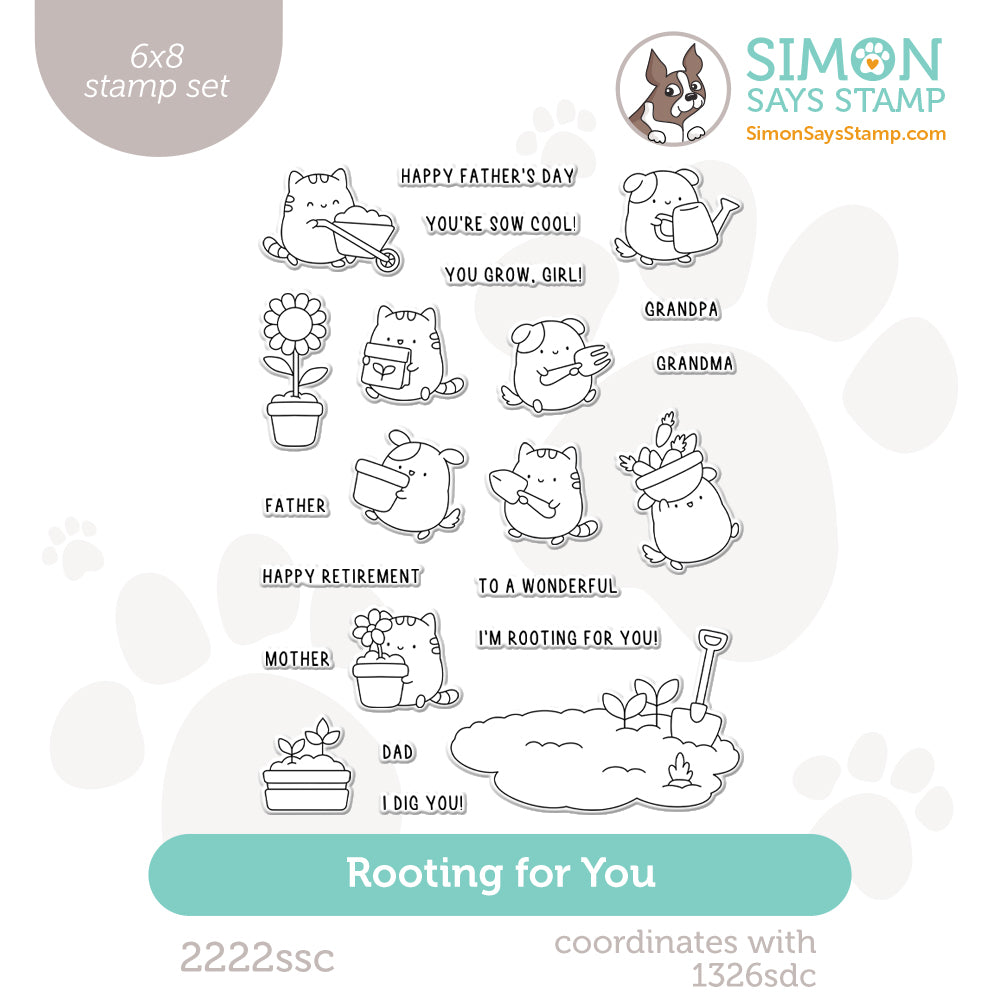 Celebrate growth, encouragement, and a little dirt with the Simon Says Stamp Rooting for You stamp set! This charming collection features chubby cats and dogs engaged in playful garden activities—tending to flowerpots, wielding tiny tools, watering plants, and harvesting veggies.