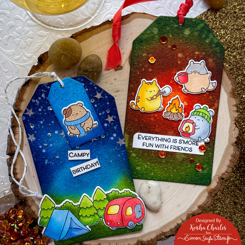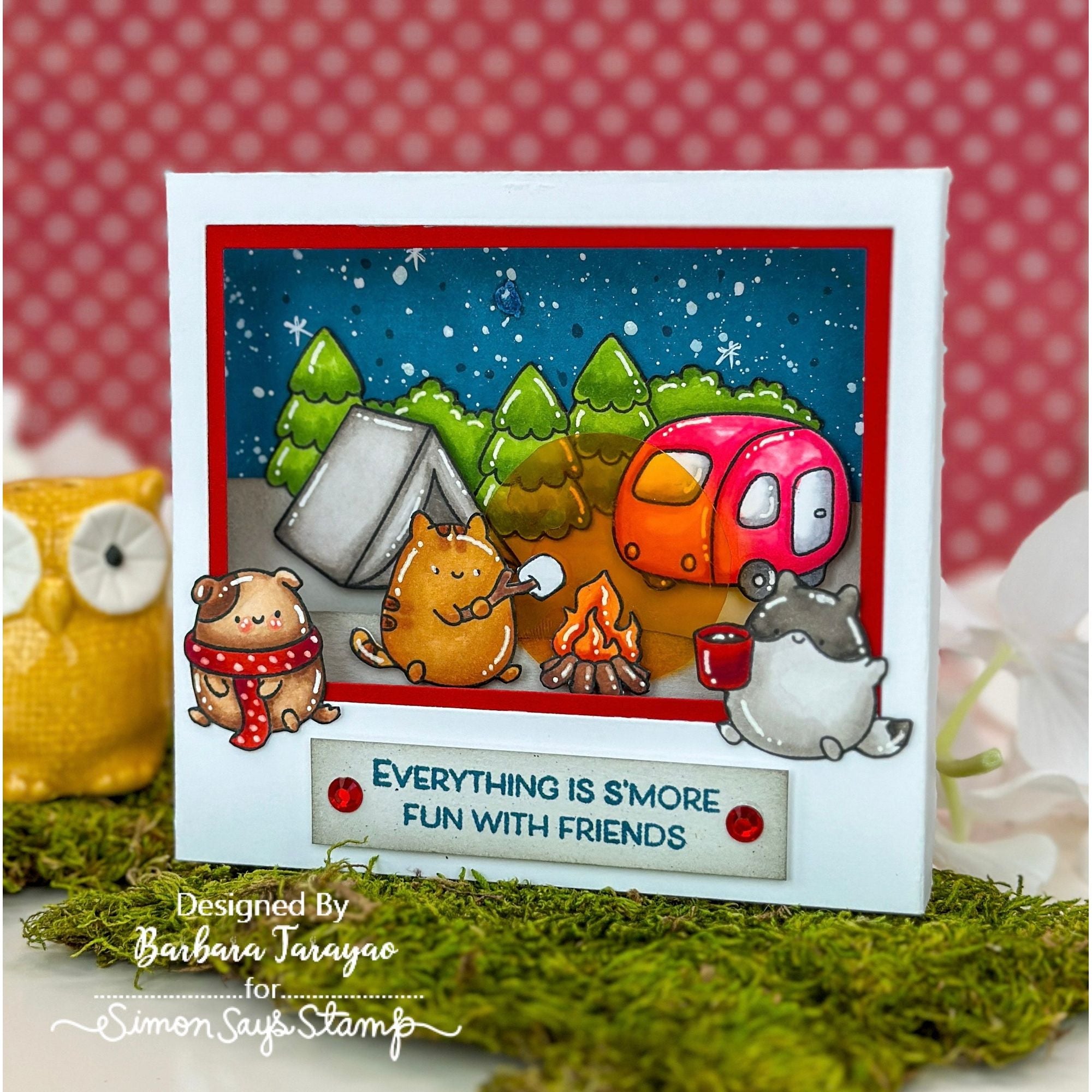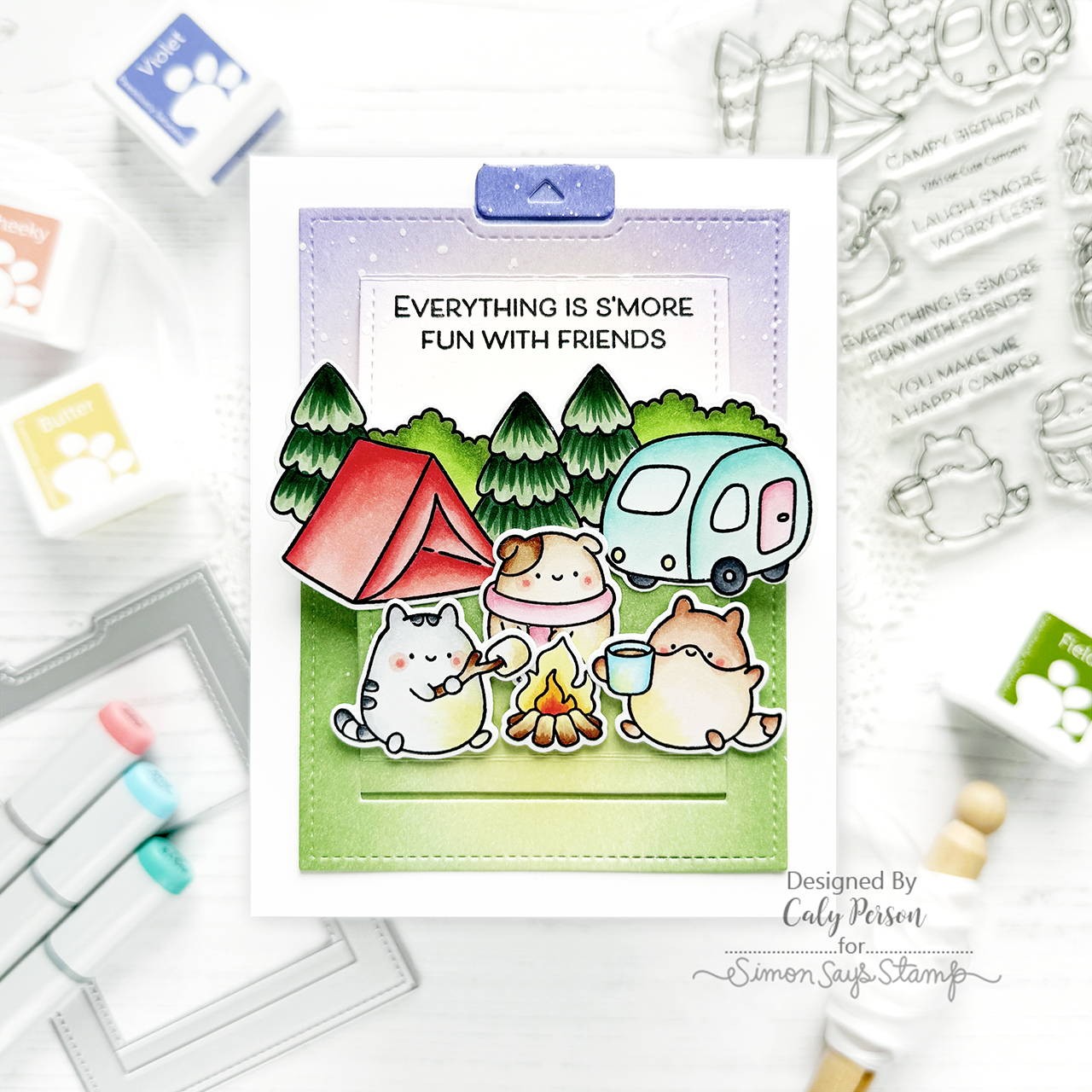 The Simon Says Stamp Cute Campers dies are the perfect coordinating set for the Cute Campers stamps, cutting out all the delightful images and sentiments with crisp precision. Easily bring your campsite scene to life with dies for the tent, camper, campfire, and grove of trees, along with the four adorable critters—a marshmallow-roasting cat, lantern-toting mouse, cozy raccoon, and scarfed pup.