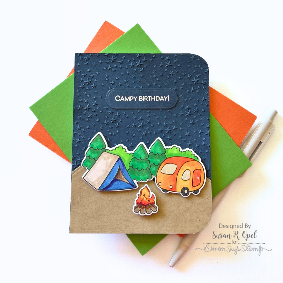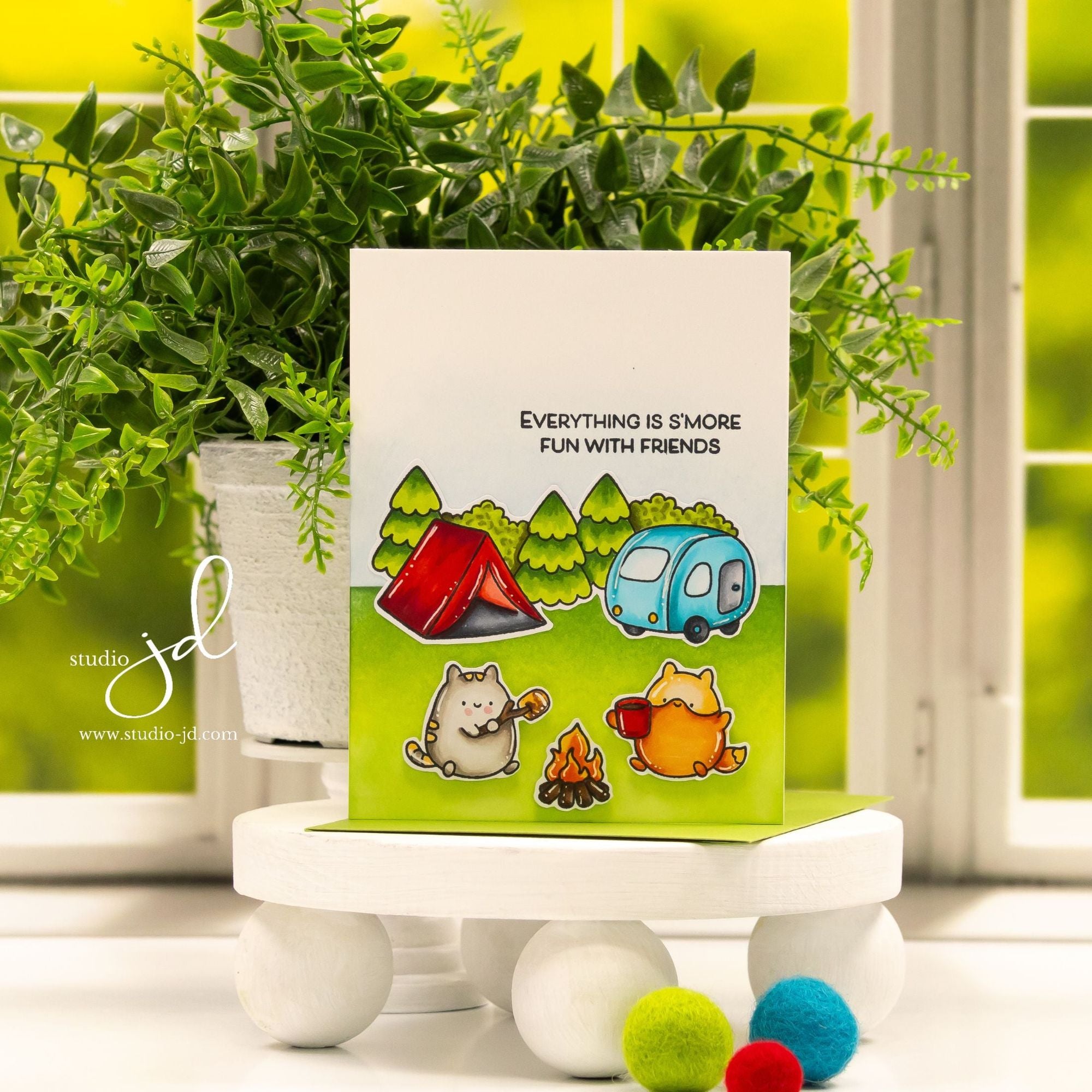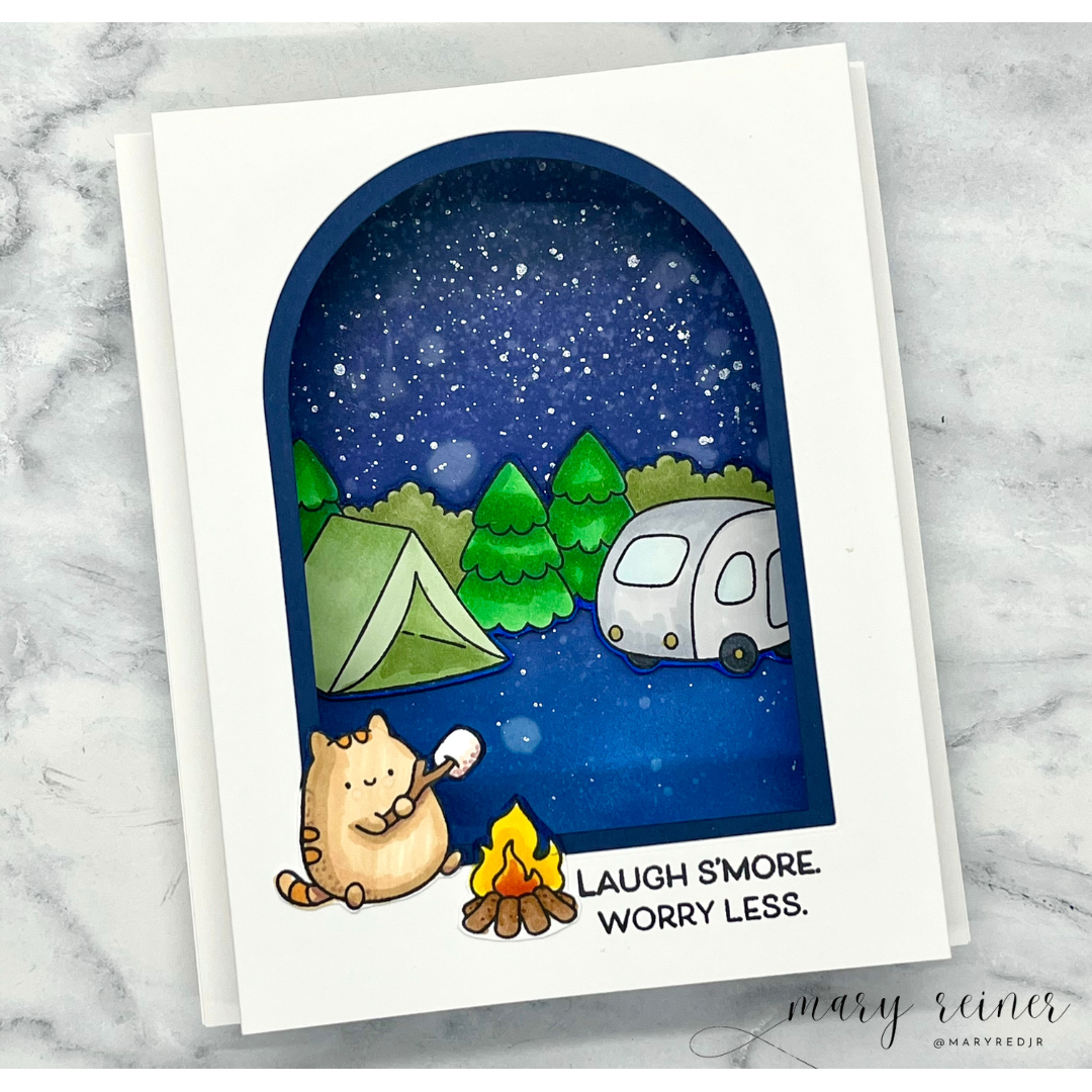 The Simon Says Stamp Cute Campers dies are the perfect coordinating set for the Cute Campers stamps, cutting out all the delightful images and sentiments with crisp precision. Easily bring your campsite scene to life with dies for the tent, camper, campfire, and grove of trees, along with the four adorable critters—a marshmallow-roasting cat, lantern-toting mouse, cozy raccoon, and scarfed pup.