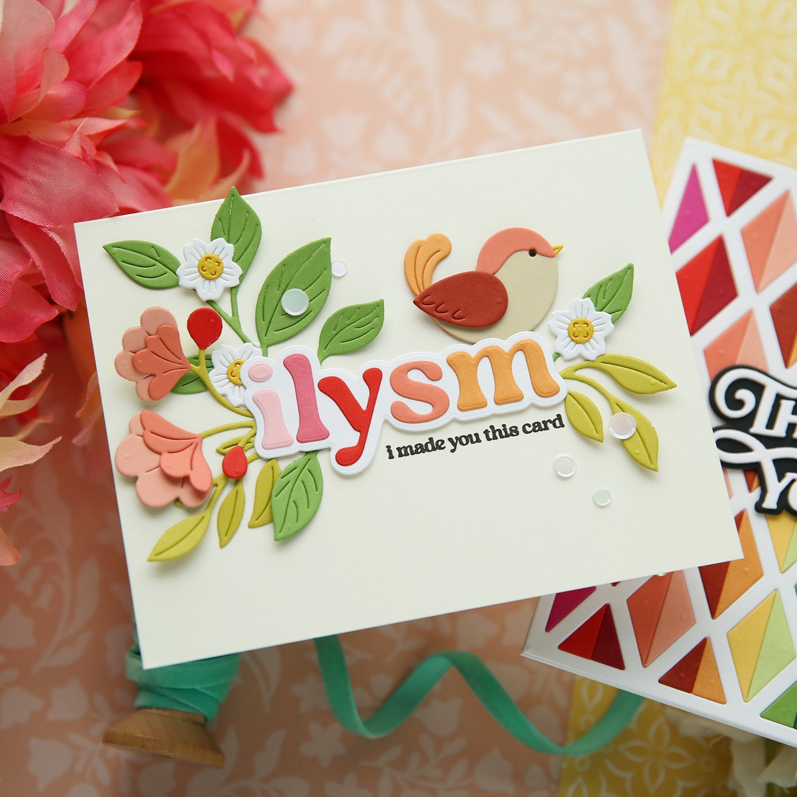 The Simon Says Stamp ILYSM dies are the perfect way to add dimension and impact to your heartfelt messages. This die set cuts out the bold, playful "ilysm" (I love you so much) sentiment and includes a coordinating outline die for added versatility.