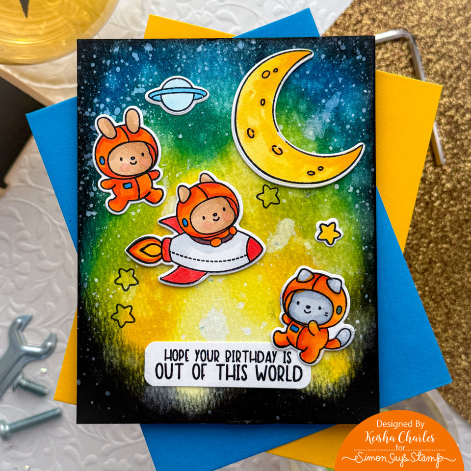 The Simon Says Stamp Shoot for the Moon dies are the perfect companion to the Shoot for the Moon stamp set, designed to cut out the adorable space critters, rocket, moon, planet, star, and two of the playful sentiments.