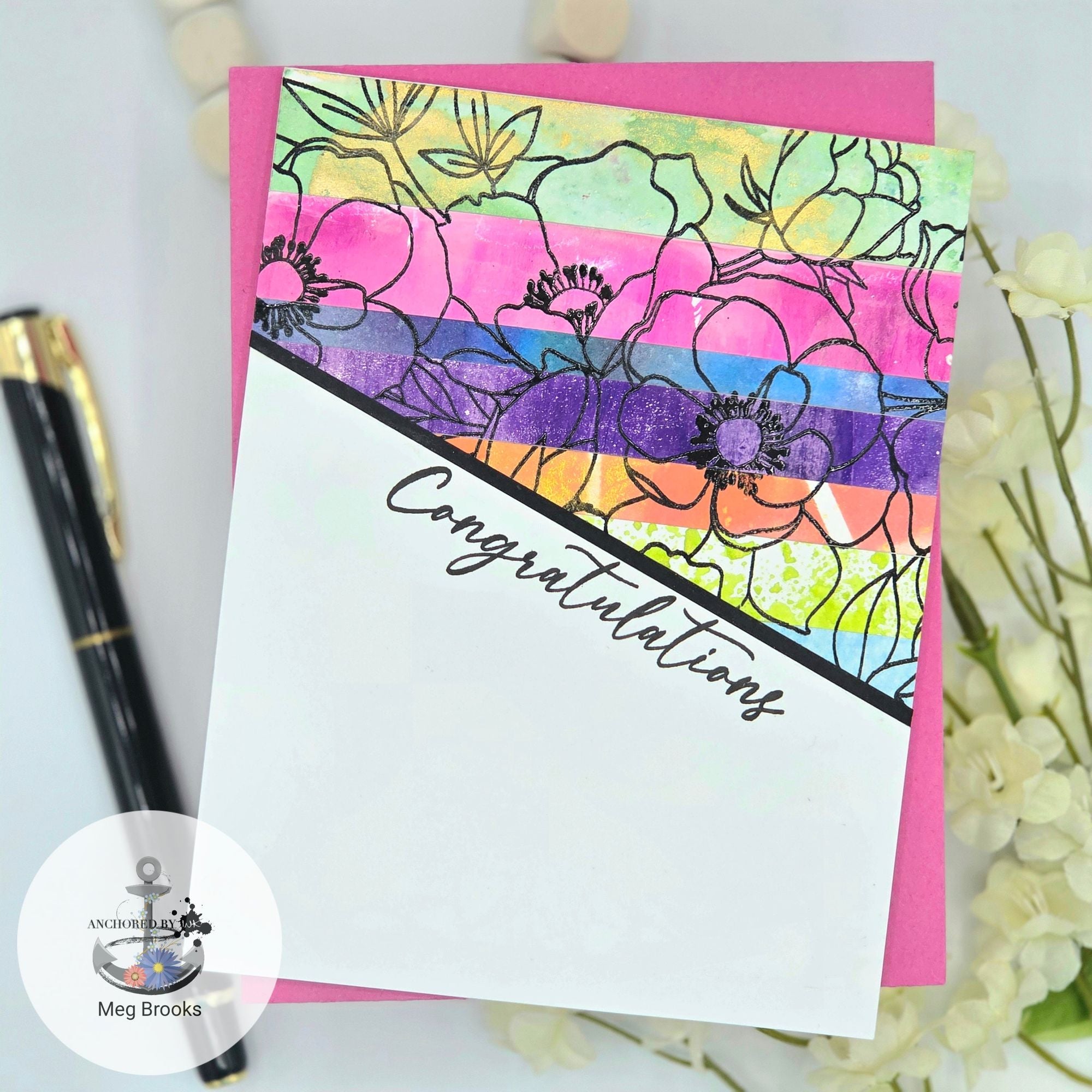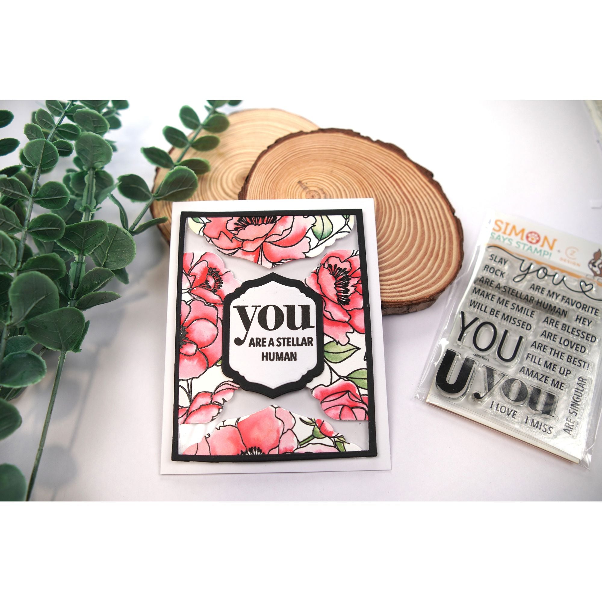 The detailed linework on the floral stamp makes it ideal for showcasing artistic techniques or creating a bold focal point. The set also includes several script-style sentiments that pair beautifully with the floral image, making it perfect for cards, journaling, and mixed media: