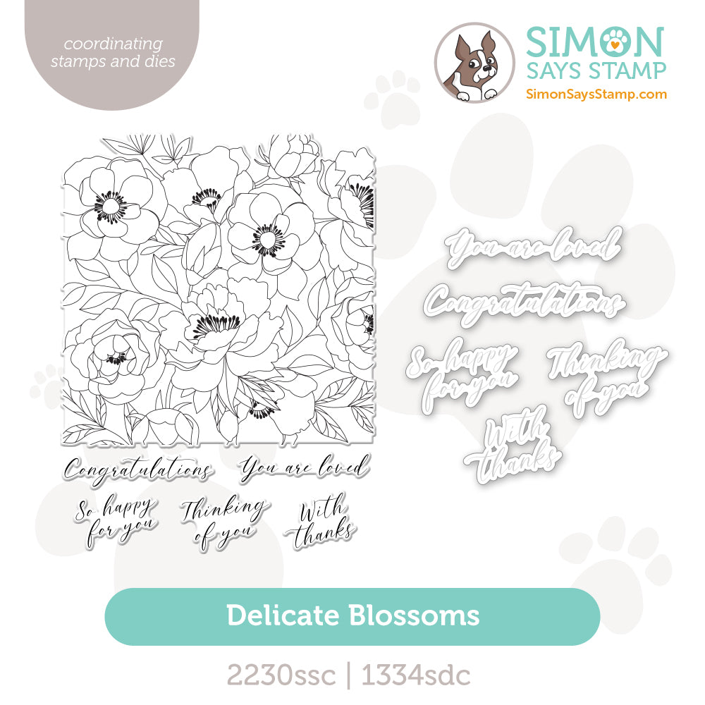 Bring floral elegance to your projects with the Simon Says Stamp Delicate Blossoms stamps and dies. The stunning stamp set features a large 6x6 inch image of a cluster of glorious blooms, perfect for embossing, coloring, or watercoloring with your favorite mediums.