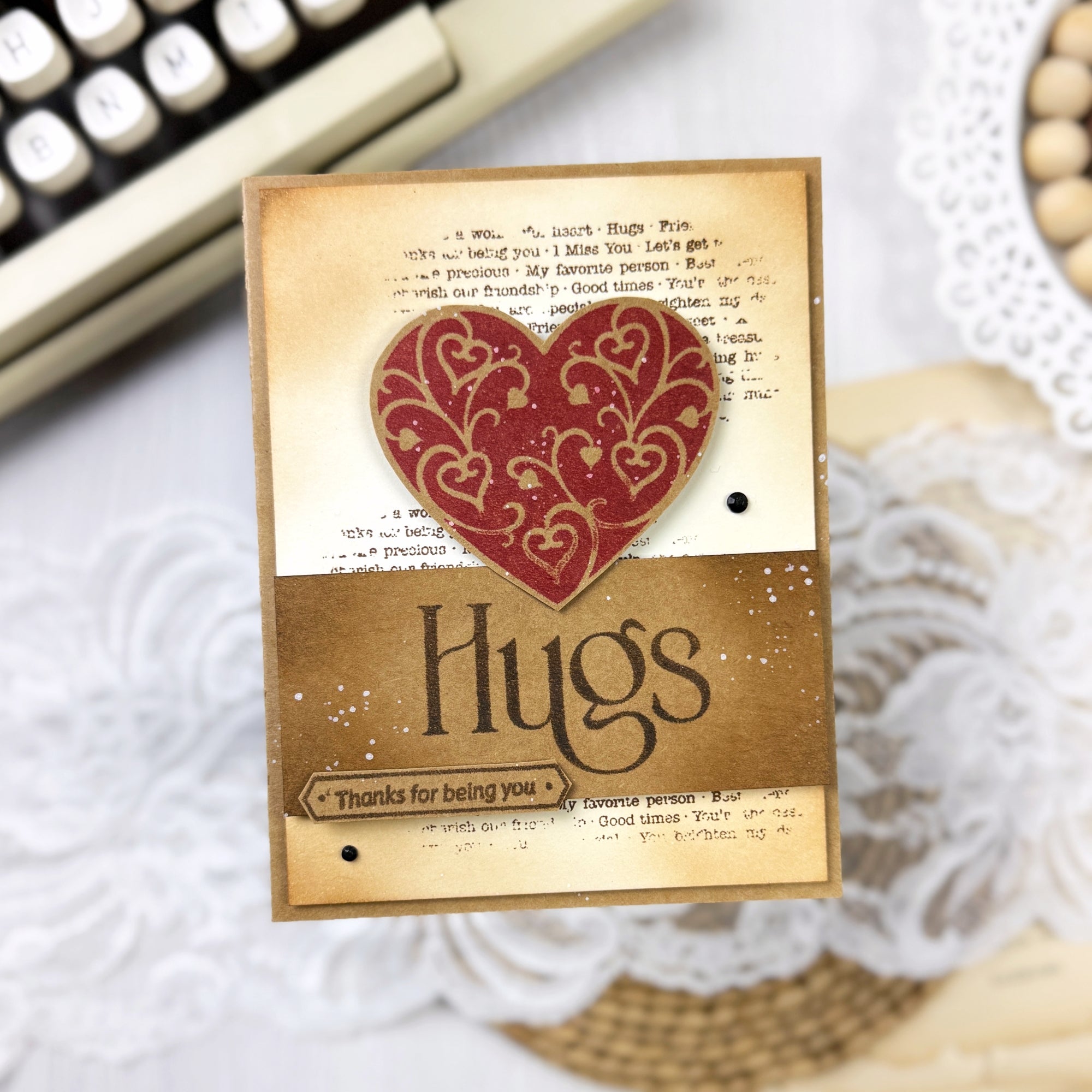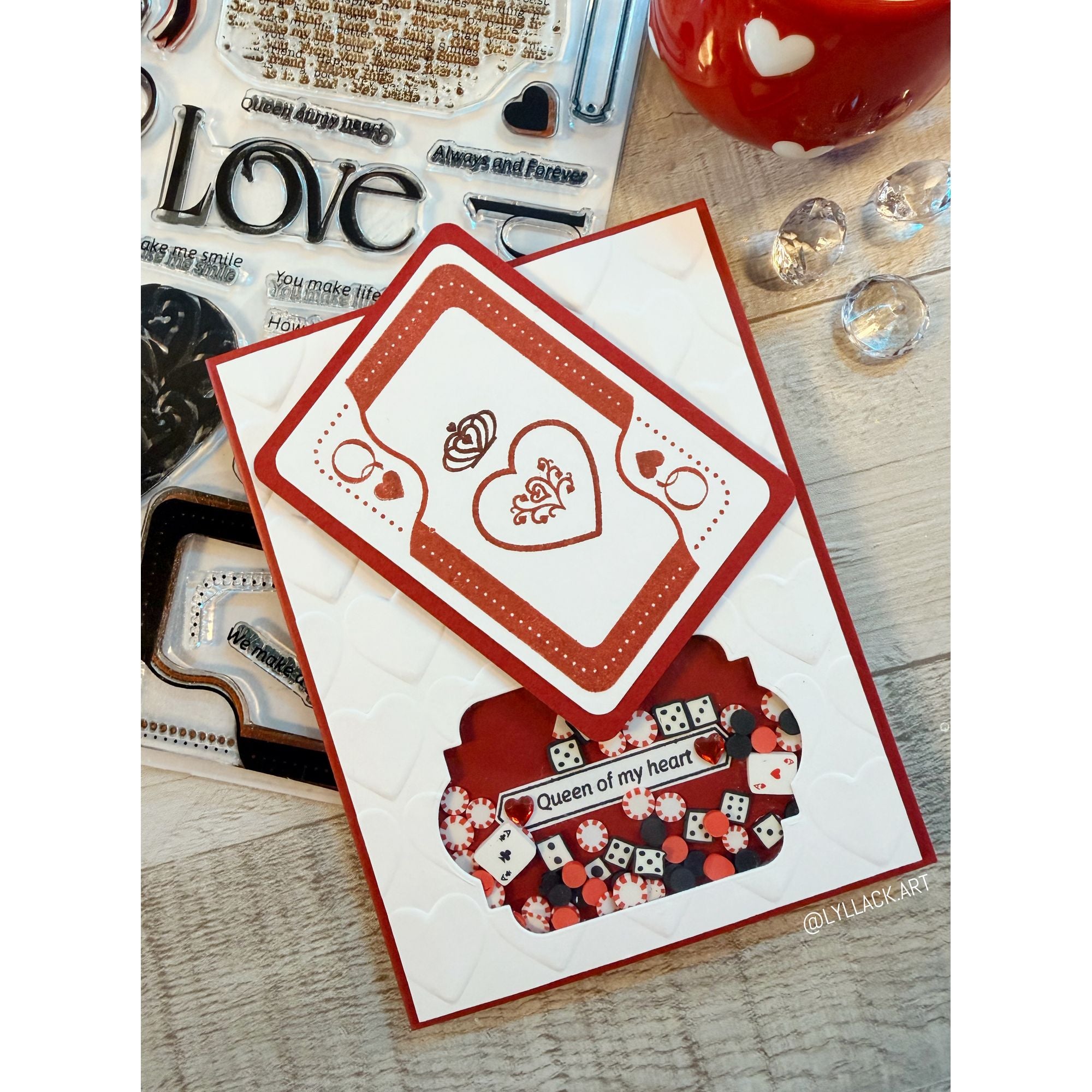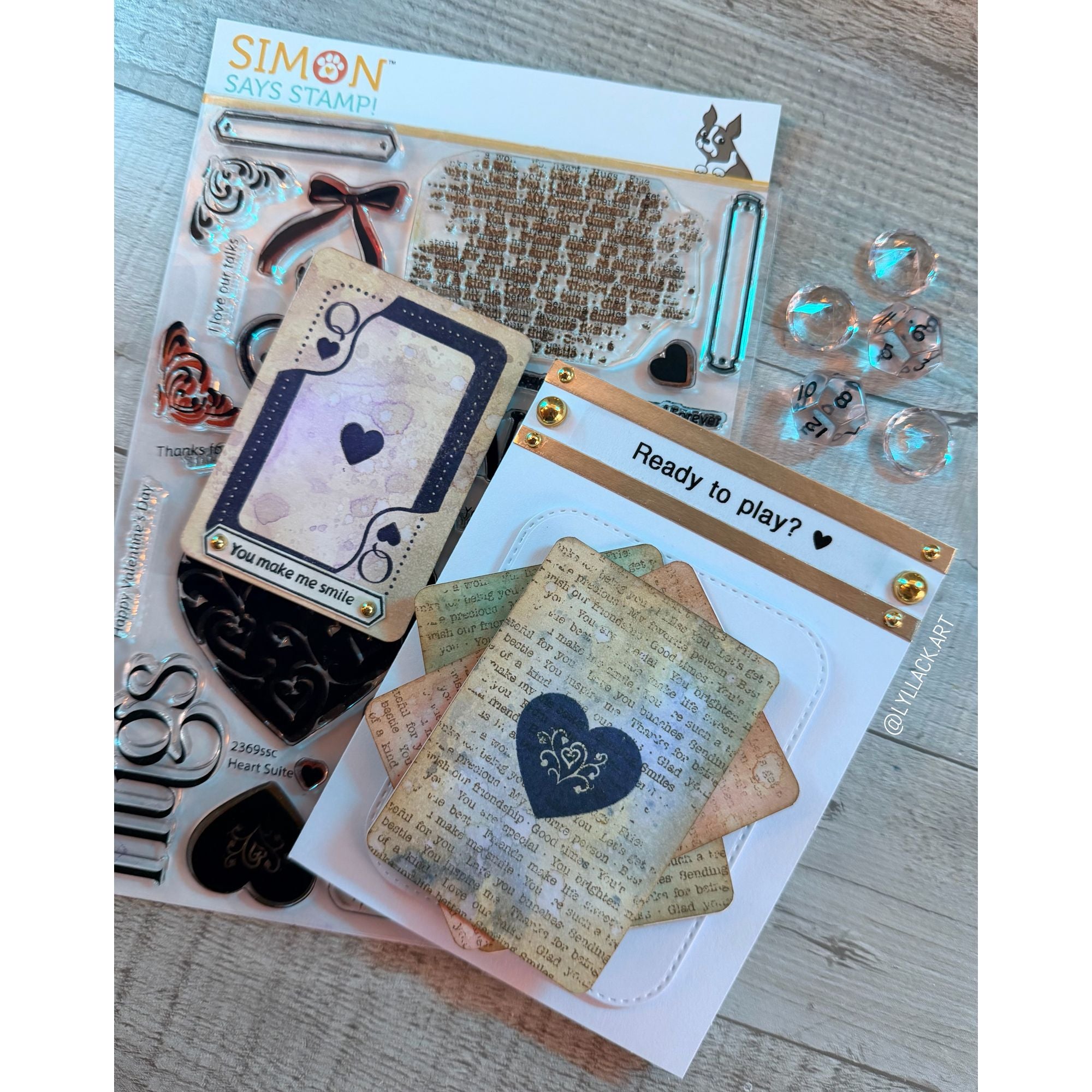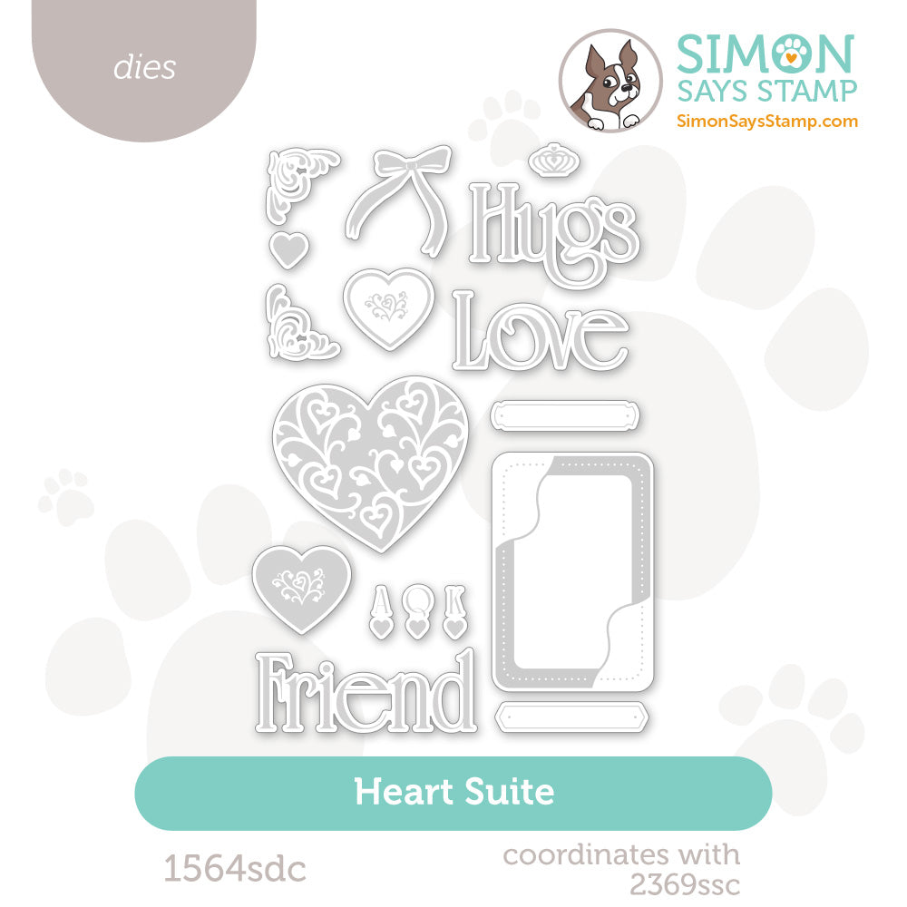 The Simon Says Stamp Heart Suite dies are designed to perfectly coordinate with the Heart Suite stamp set, cutting out all of the detailed images with precision and ease. This set includes dies for the playing card, hearts, bows, frames, corner accents, and more, along with the large words "Hugs," "Love," and "Friend" for bold, layered sentiments.
